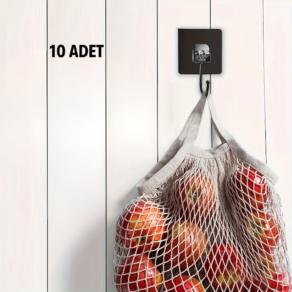 10 Adet Güçlü Yapışkanlı Siyah Duvar Askısı – Delmeden, Vida Kullanmadan Pratik Çözüm!