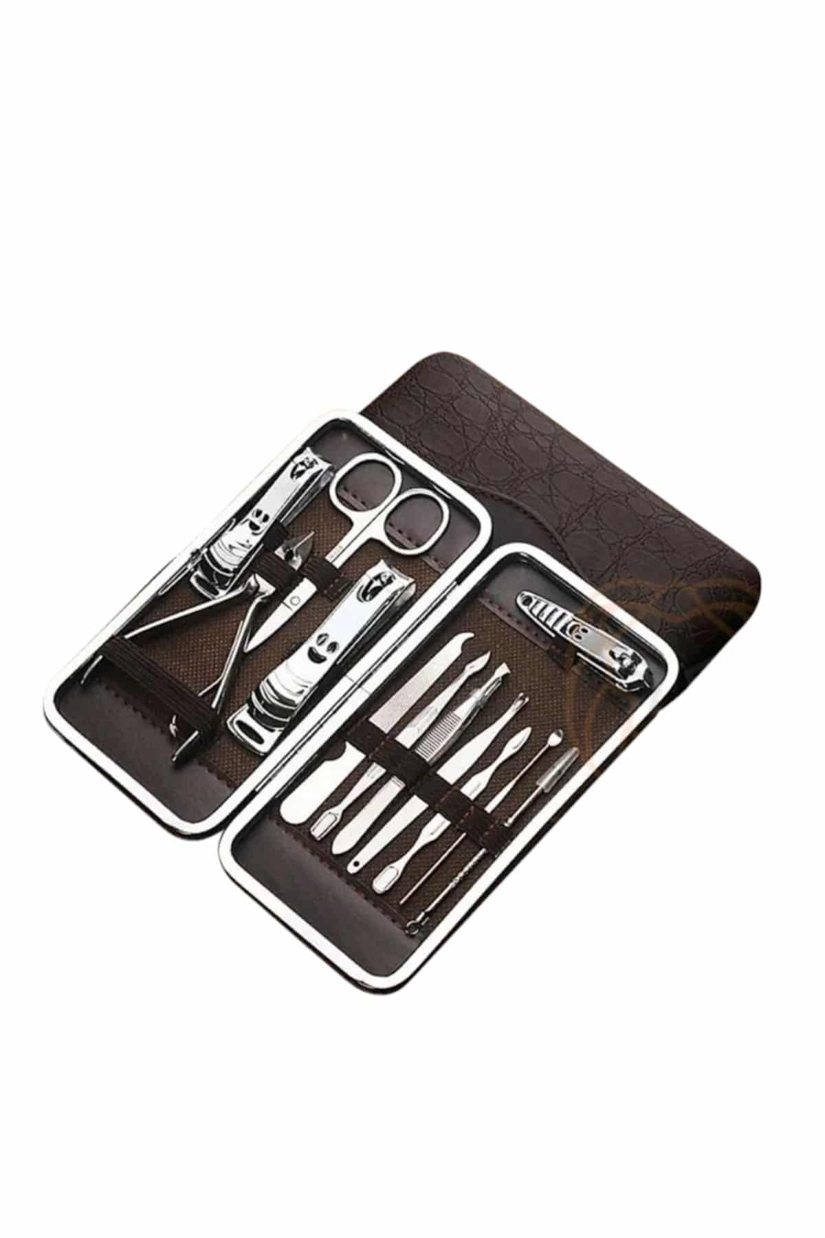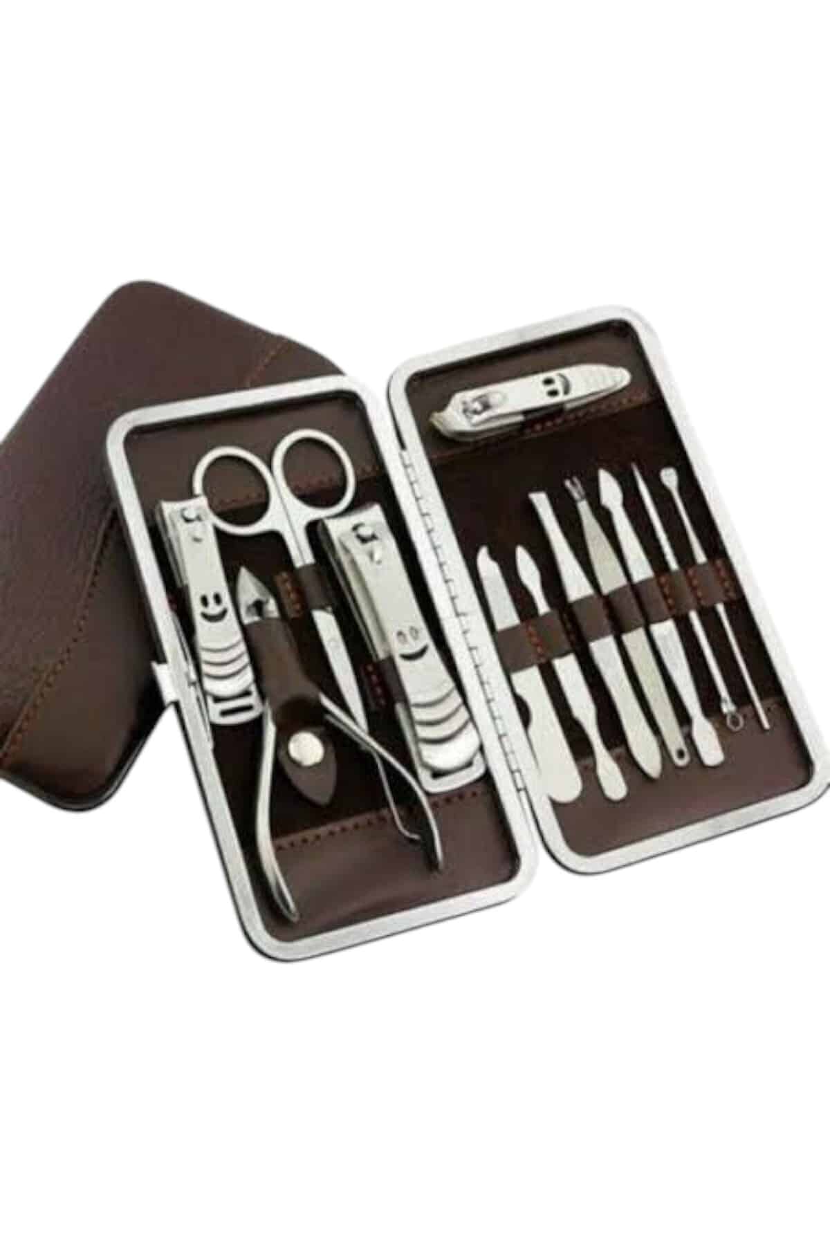 Özel deri çantalı bu hepsi bir arada bakım seti ile el ve ayak bakımınızı zahmetsizce yaparak kuaför masrafından kurtulabilirsiniz. Paslanmaz çelikten üretilmiş dayanıklı ve kaliteli aparatları sayesinde uzun ömürlü kullanım sunan bu set, taşınabilir boyutu ile çantanızda rahatlıkla taşınabilir ve seyahatlerinizde size eşlik eder. Setin içerisinde kulak çekme aparatı, çok amaçlı makas, manikür makası, üç farklı tırnak makası/düzeltici, pense, kir temizleme aparatı, kaş cımbızı, manikür bıçağı, tırnak törpüsü ve akne iğnesi bulunur. Şık ve kullanışlı deri çantasıyla düzenli bir şekilde saklanabilen bu set, hem günlük kullanım hem de hediye alternatifi olarak mükemmel bir seçenektir.