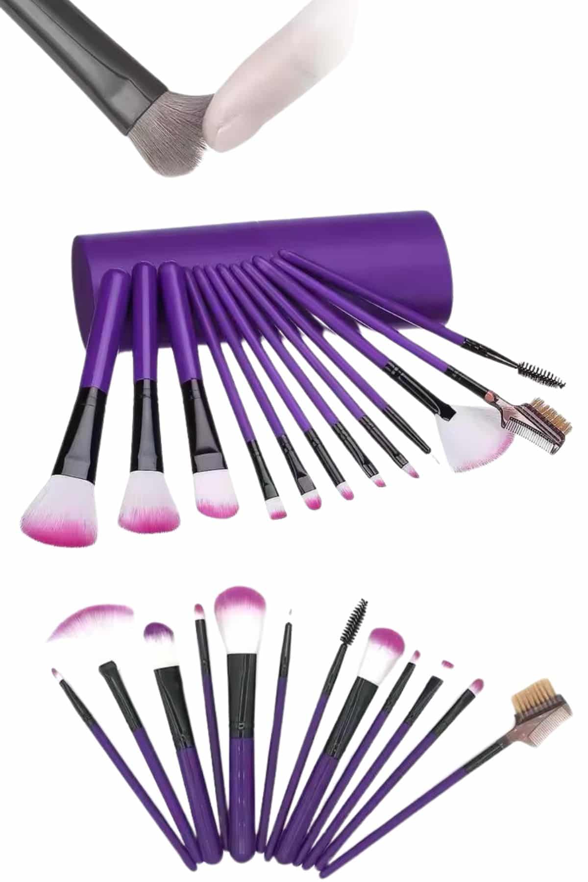 12 Parça Yumuşak Uçlu Makyaj Fırça Set-Göz ve Yüz Makyajı İçin Fırça Seti Profesyonel Makyaj Seti