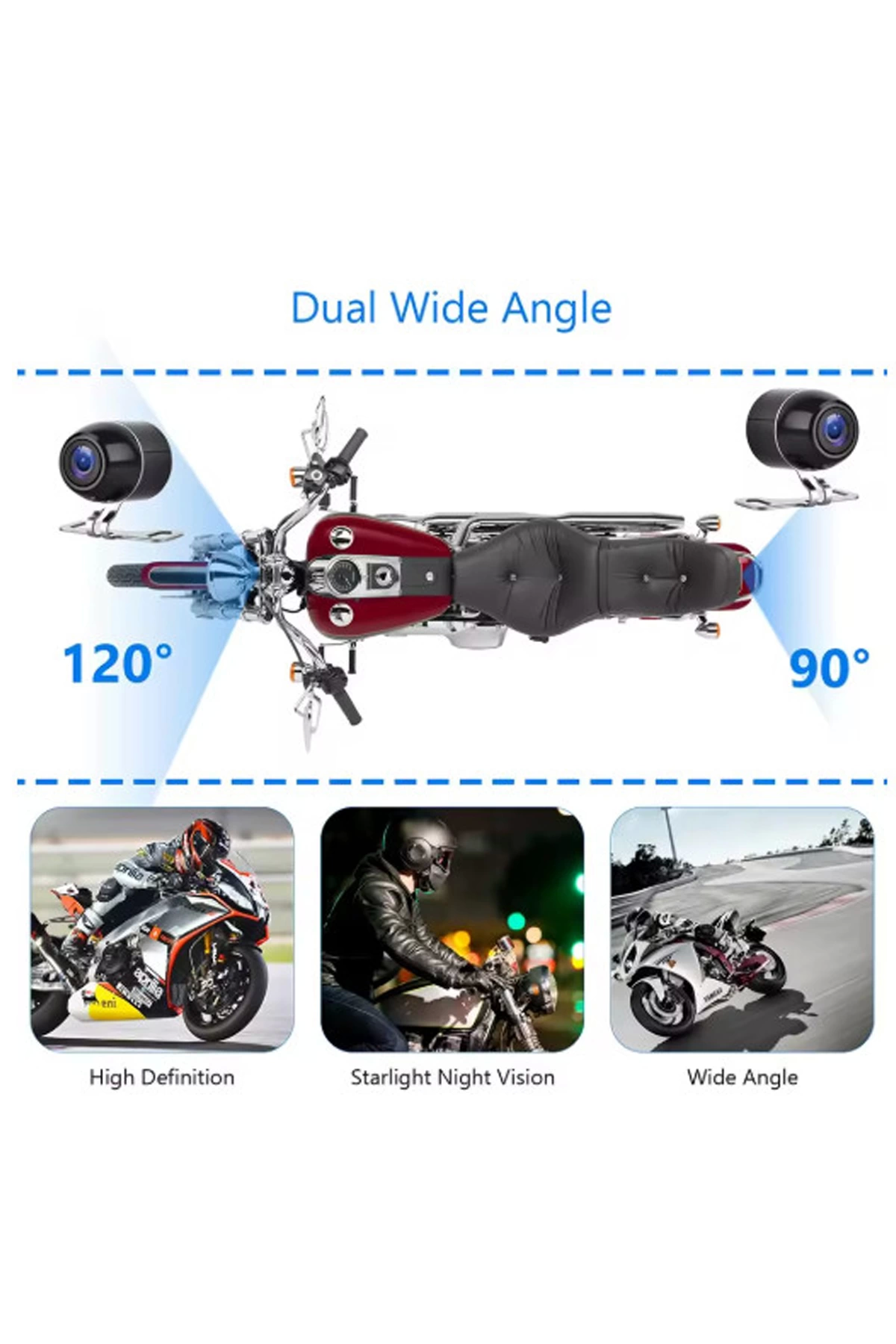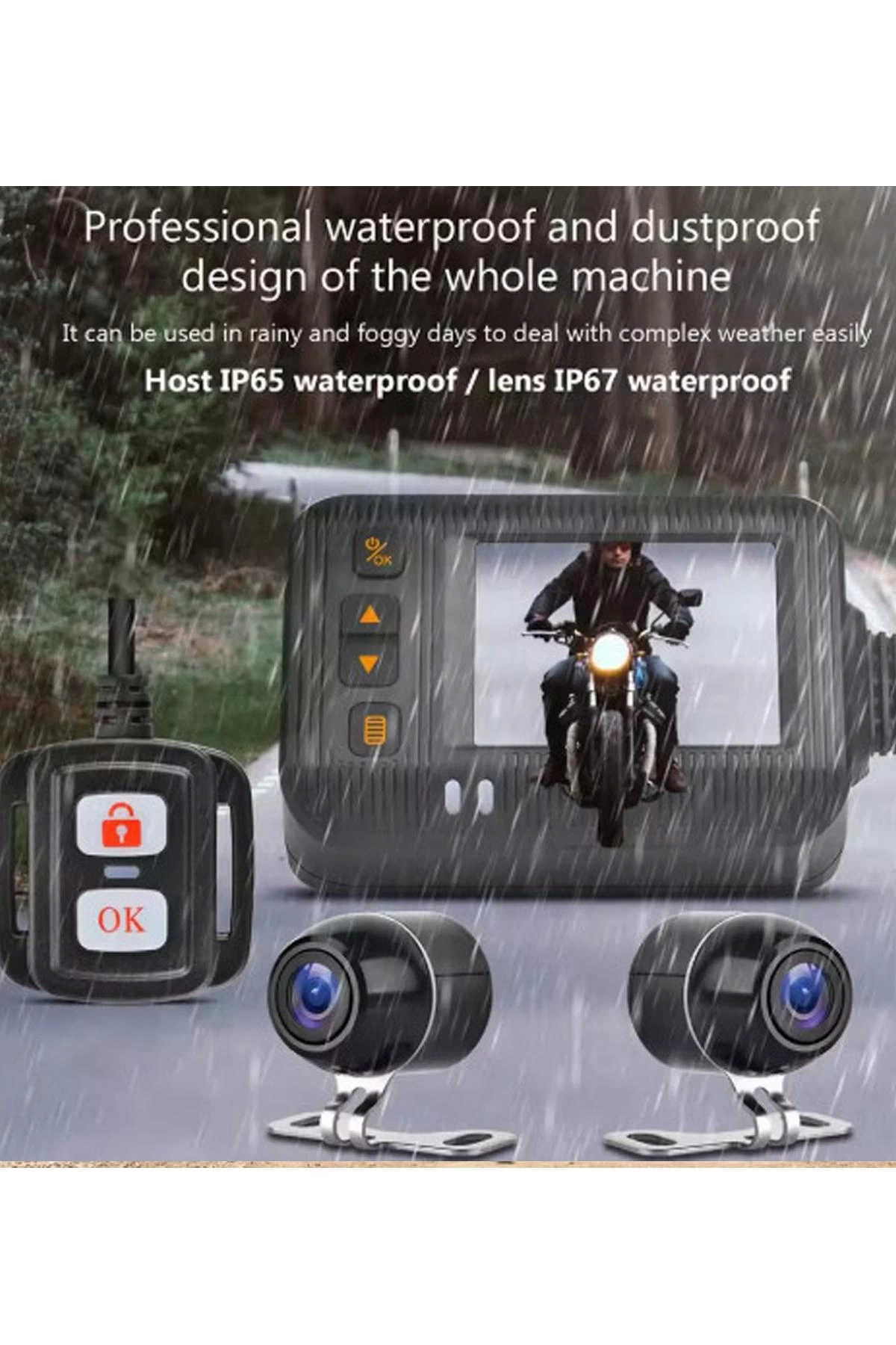 2 İnç Ekran 1080p Motosiklet Ön Ve Arka Görüş Kamerası Kumandalı Gidon Baglantılı
