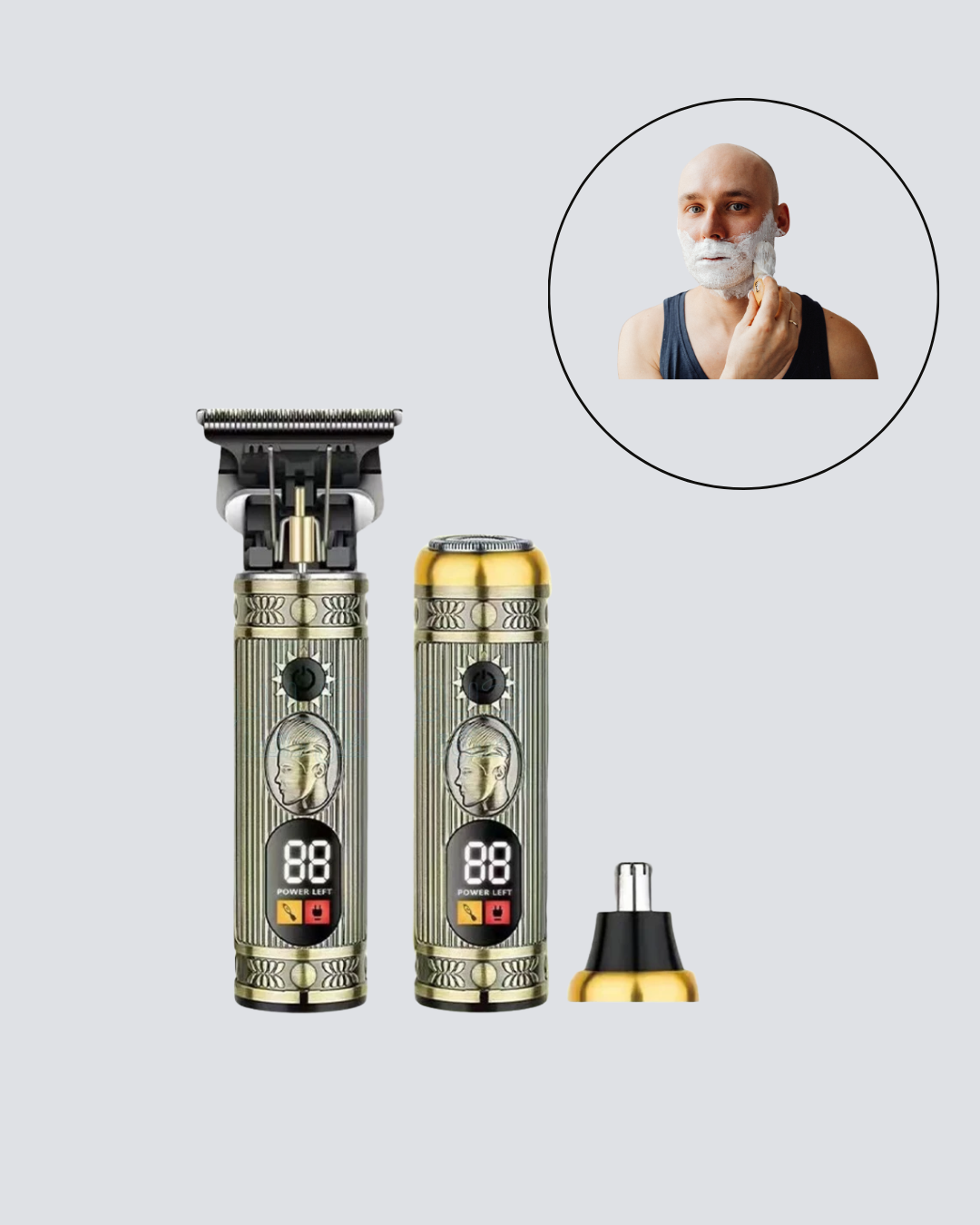 2’si 1 Arada Saç ve Sakal Düzeltici Seti – T Bıçaklı, 8 Farklı Kılavuz Tarağı
