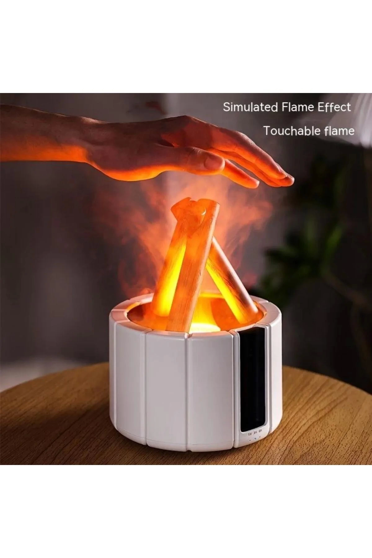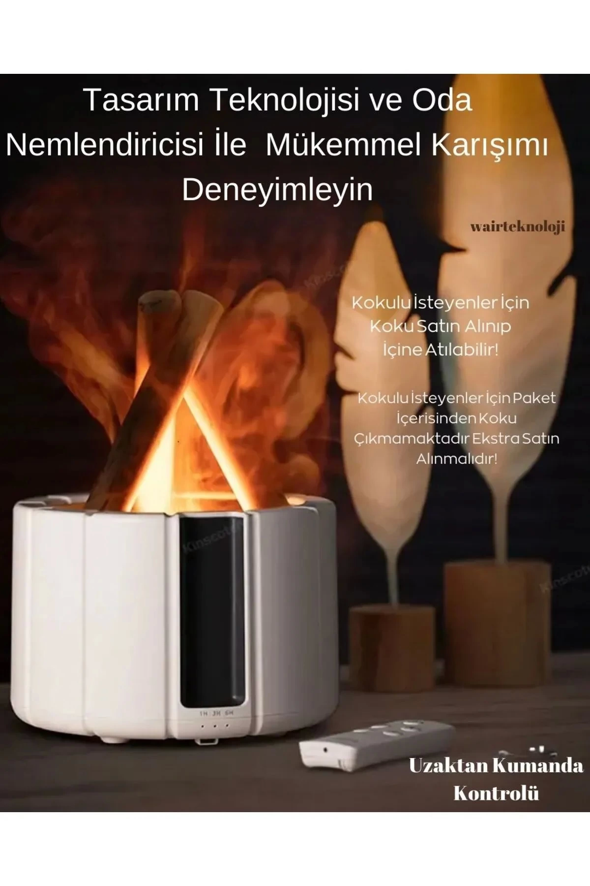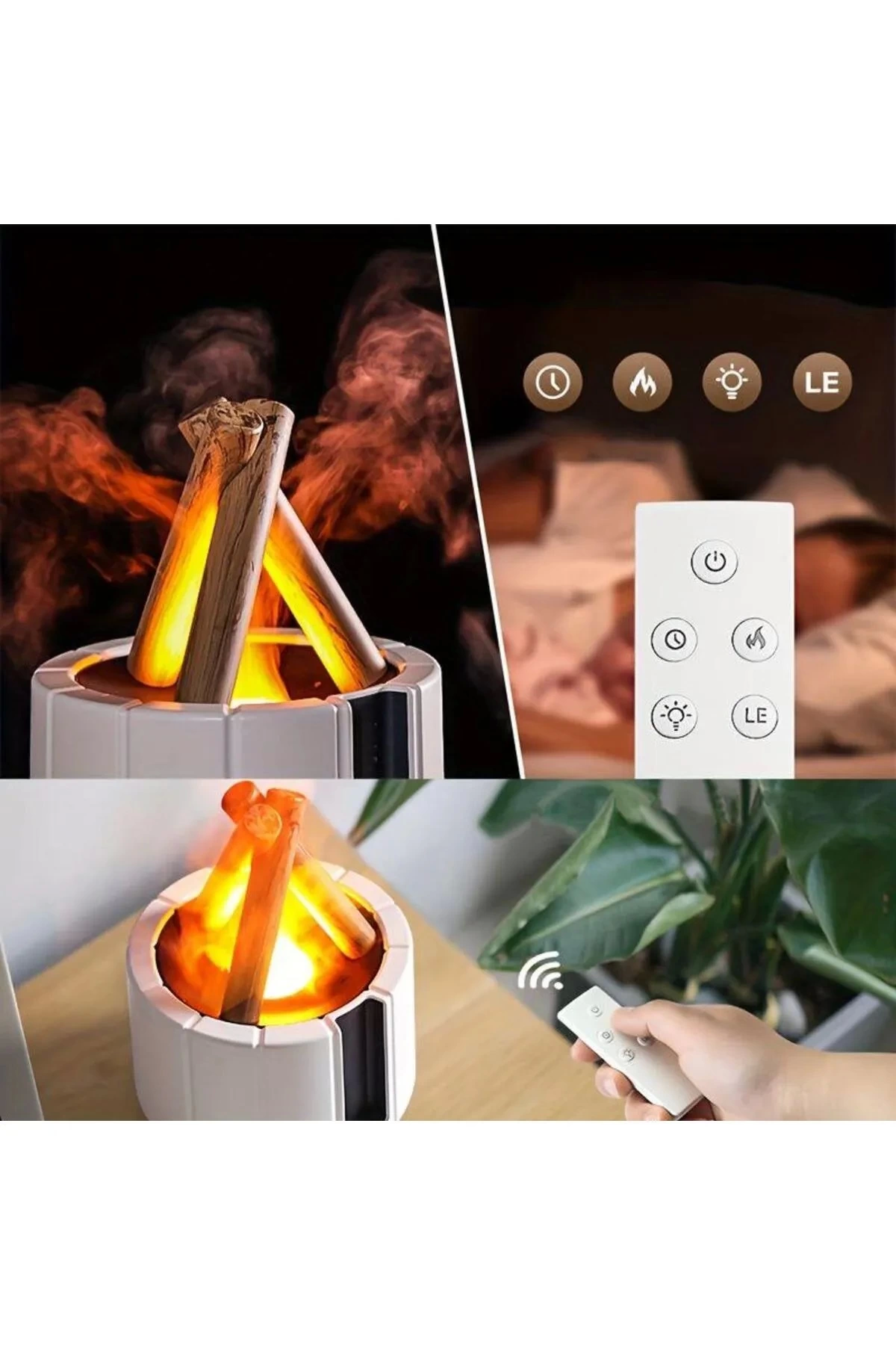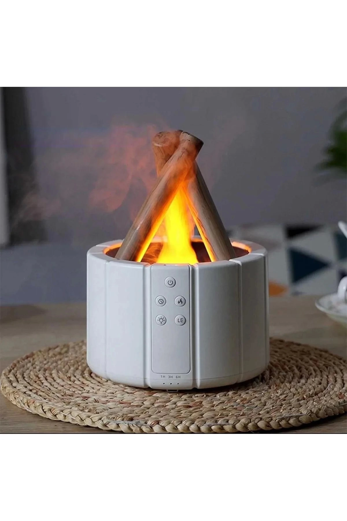 250 Ml Alev Görüntülü Bonfire Oda Nemlendirici Şık Tasarım Uzaktan Kumanda Kontrollü Beyaz