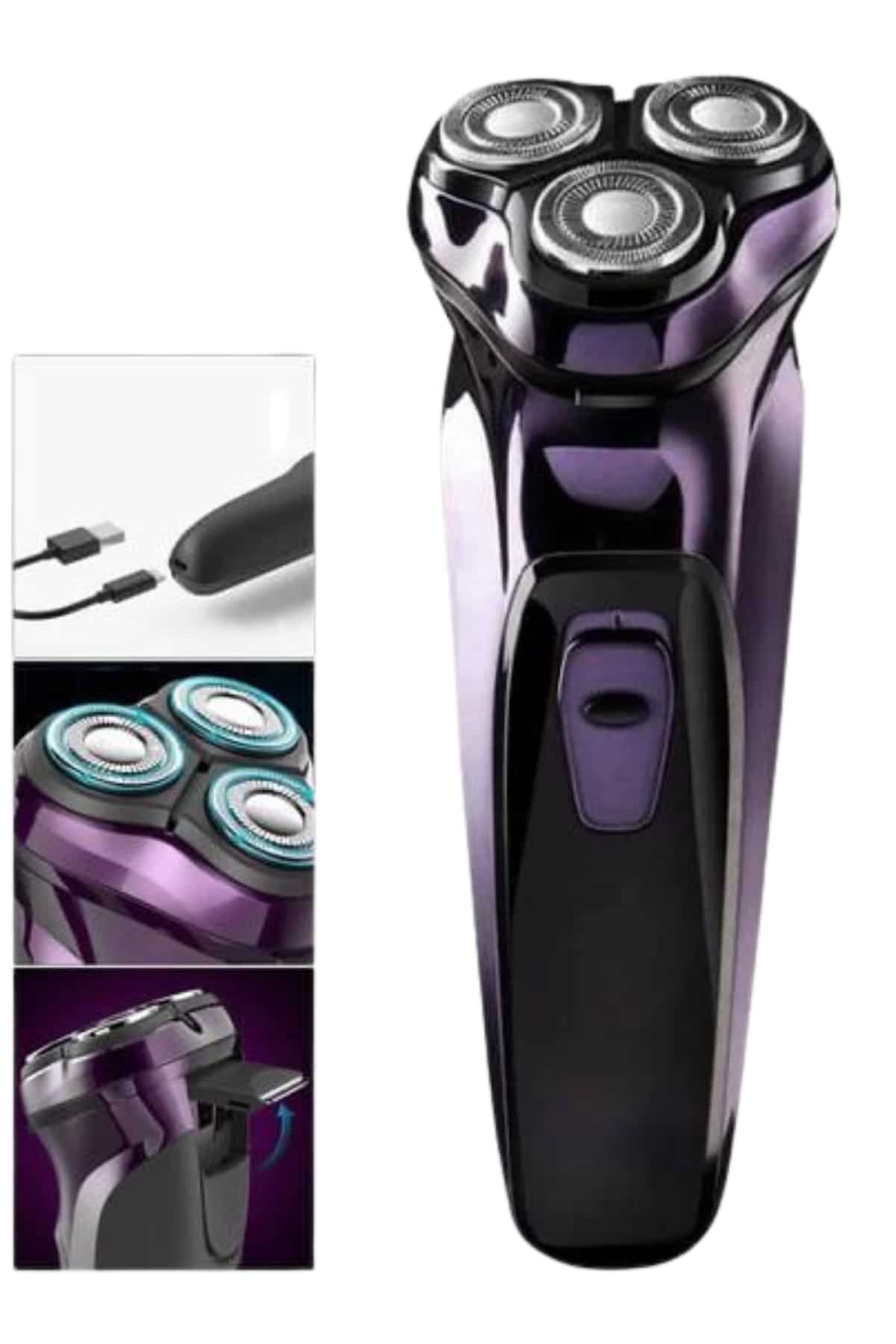 3 Bıçaklı Döner Başlıklı Sakal Sıfır Alma Tıraş Makinesi Profesyonel Paslanmaz Çelik