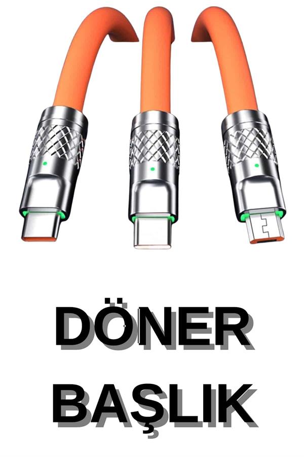 3 İn 1 Süper Hızlı Şarj Kablosu Android ve İOS Uyumlu Silikon Şarj Kablosu