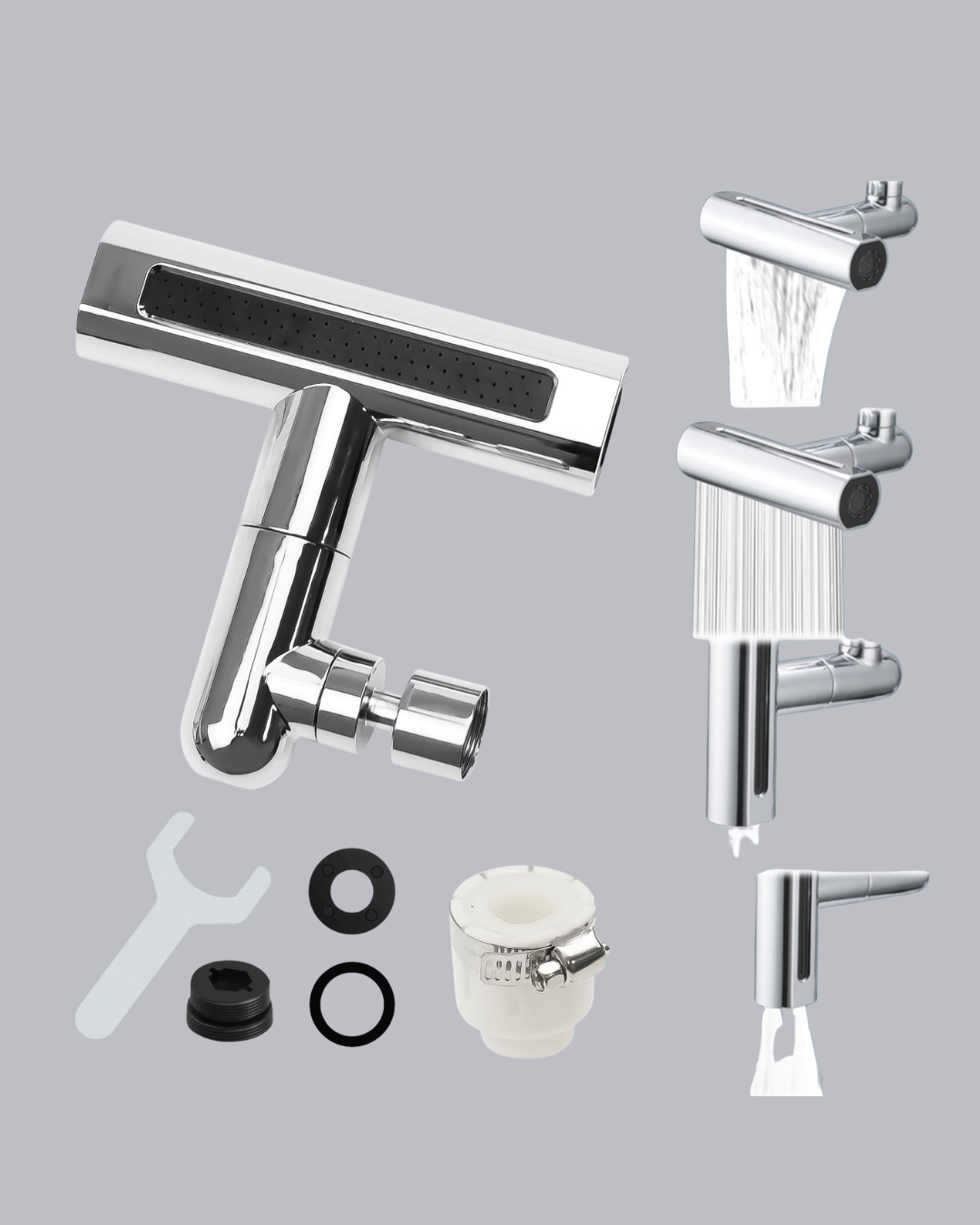 4 Fonksiyonlu Musluk Başlığı 360 Derece Dönebilen ve Su Tasarruflu