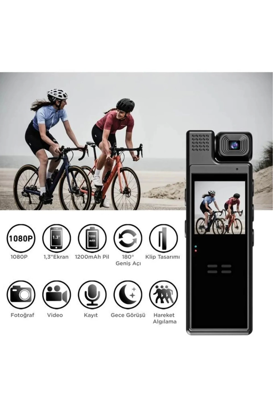 Klipsli Tasarım: Taşınabilir video kaydedici, onu yakanıza, cebinize veya sırt çantanıza kolayca takmanıza olanak tanıyan klipsli bir tasarıma sahiptir, böylece gittiğiniz her yerde taşımanız ve kullanmanız uygundur.