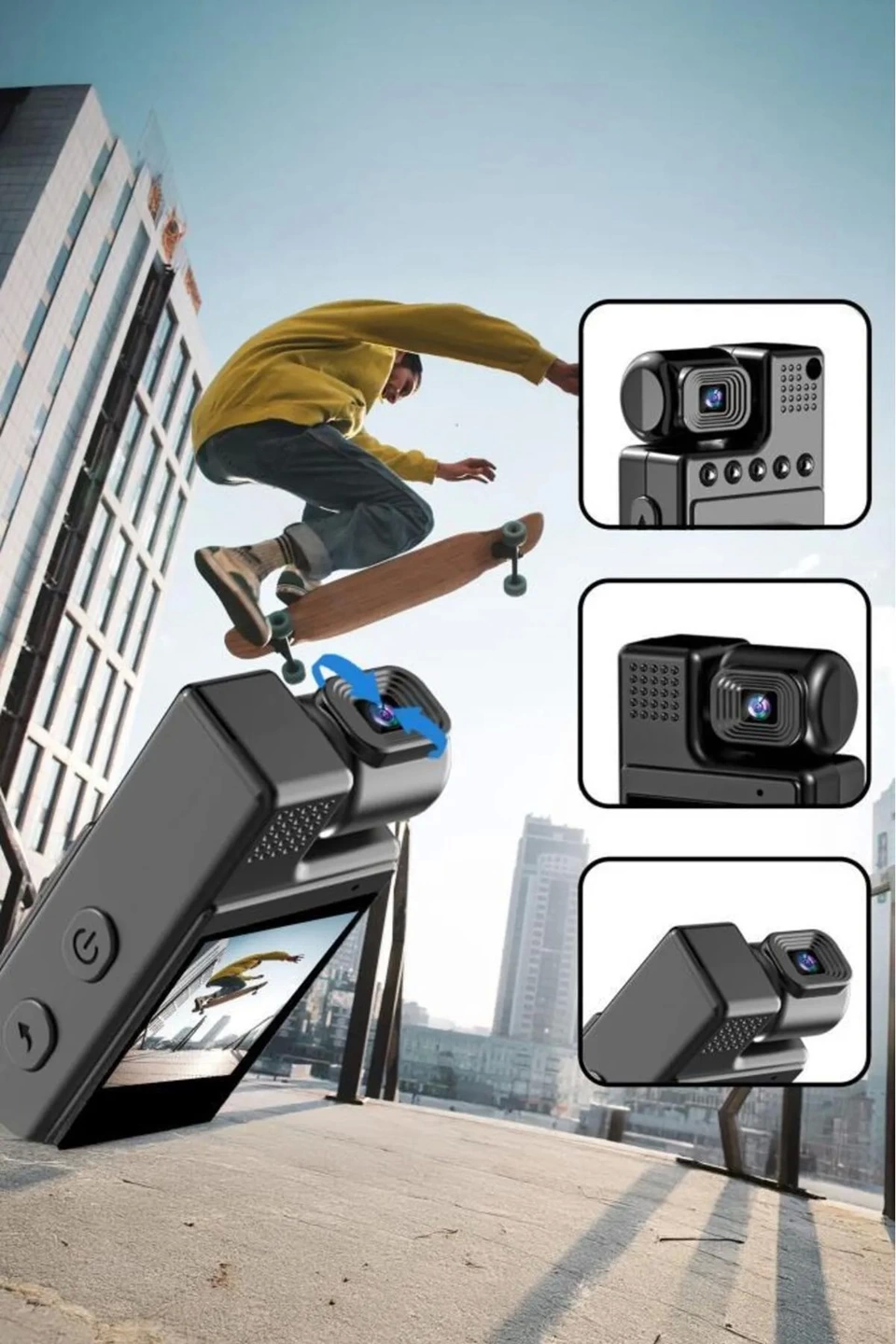4k 180 Derece Vücut Kamerası Wifi Gece Görüşlü Aksiyon Kamerası