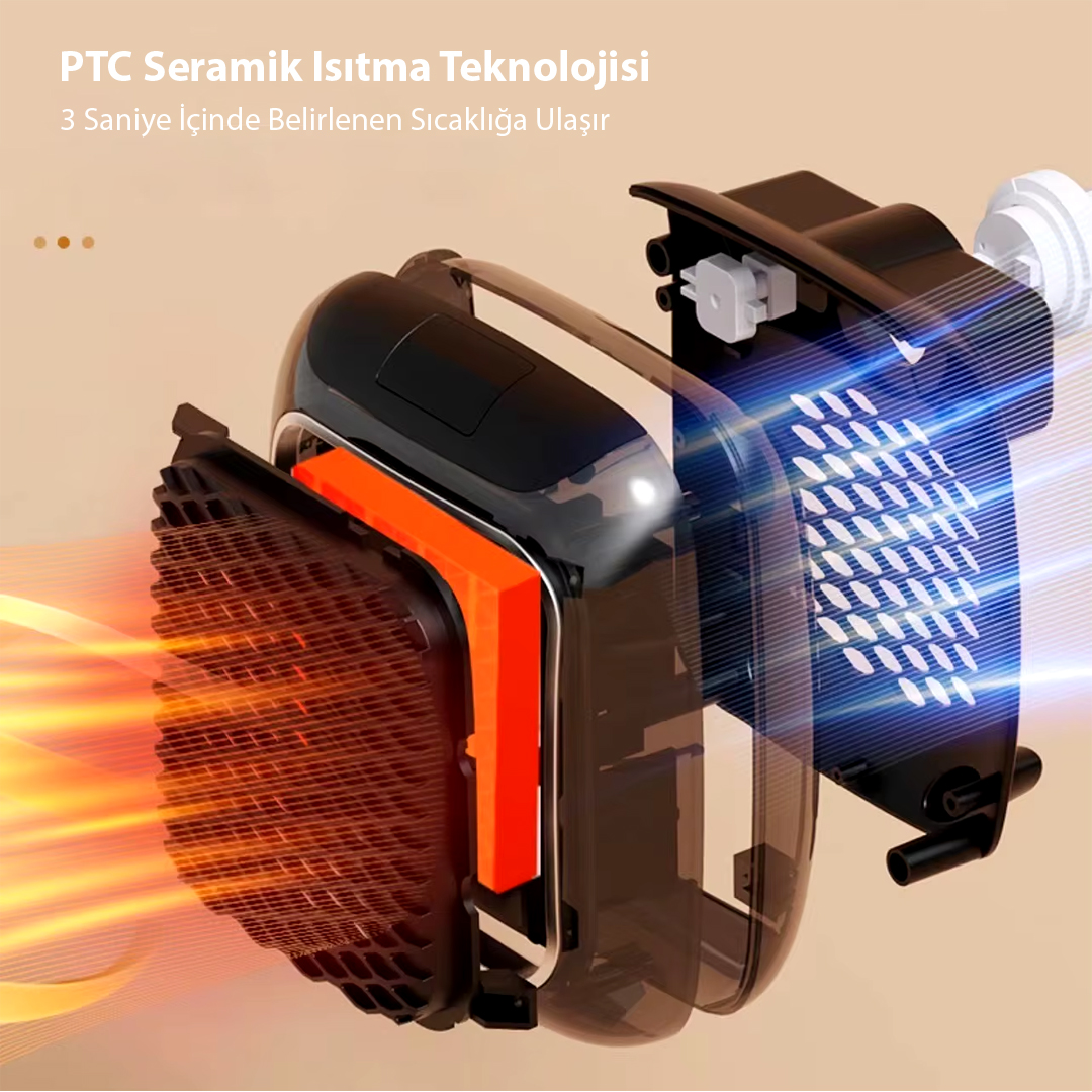 Isıtıcı içinde bulunan PTC ısıtıcılar, hızlıca istenilen sıcaklığa ulaştıktan sonra, fan yardımıyla ısının eşit bir şekilde ortamda dağıtılmasını sağlar. Bu sayede kısa sürede etkili bir ısınma elde edilir. Malzeme yapısı olarak ısıya dayanıklı yanmaz ABS plastik ve seramik kullanılan bu ürün, güvenliği ve uzun ömürlü kullanımı garantiler. Zaman ayarlı otomatik kapanma özelliği ile enerji tasarrufu yapmanızı sağlar ve ortam sıcaklığını kontrol altında tutarak ideal ısı seviyesini korur.
