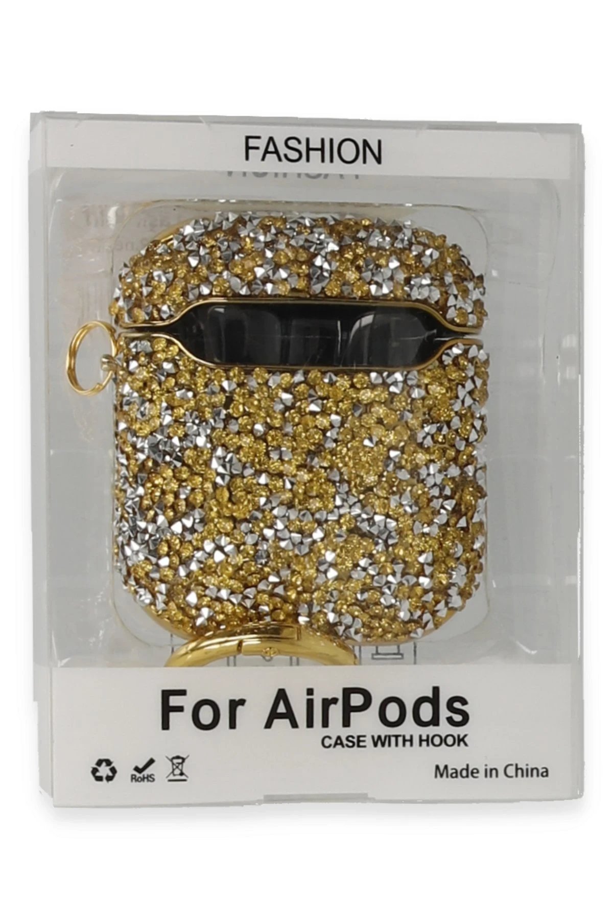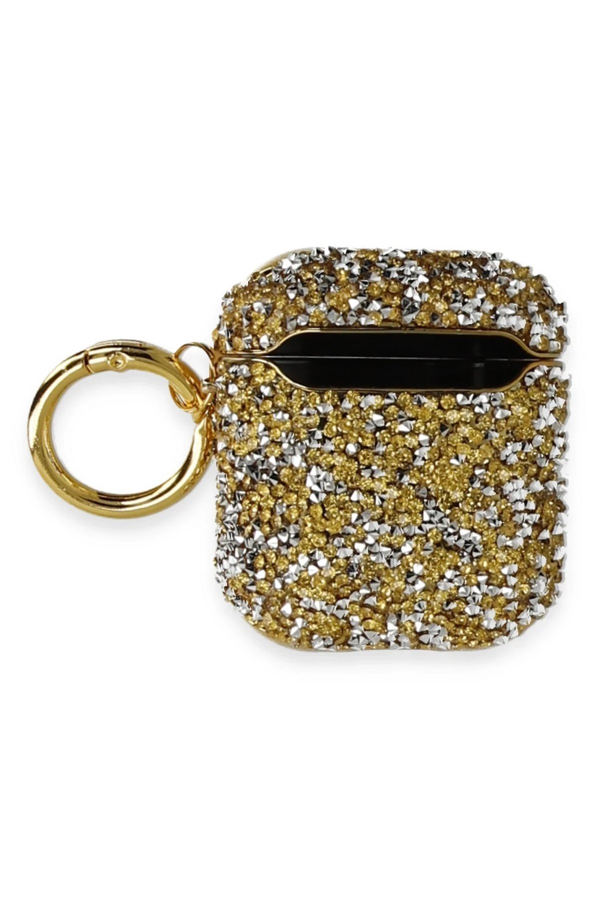 Airpods 2 (2.nesil) Mira Taşlı Kılıf - Gold-(5796)