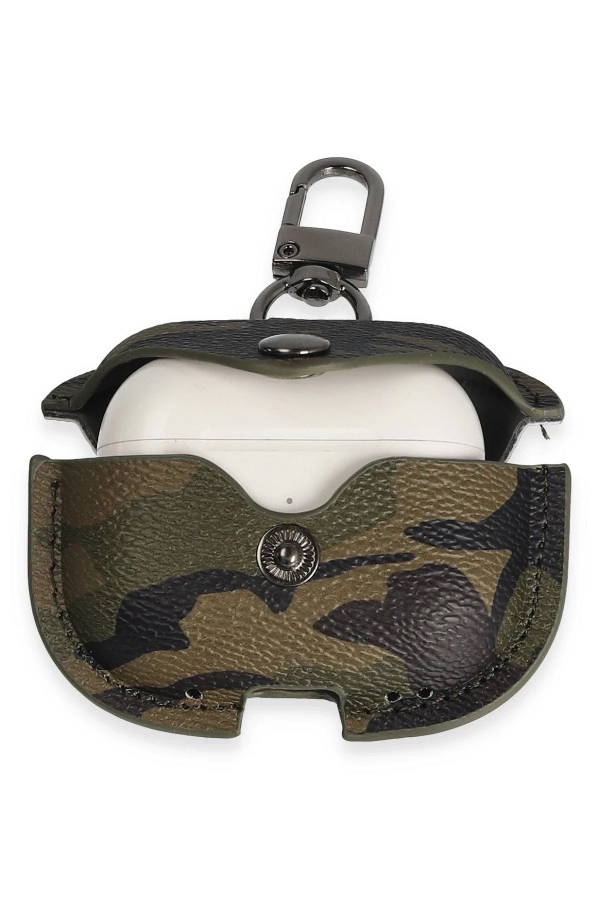 Airpods 3 (3.nesil) Çanta Kamuflaj Deri Kılıf - Haki Yeşil-(5796)