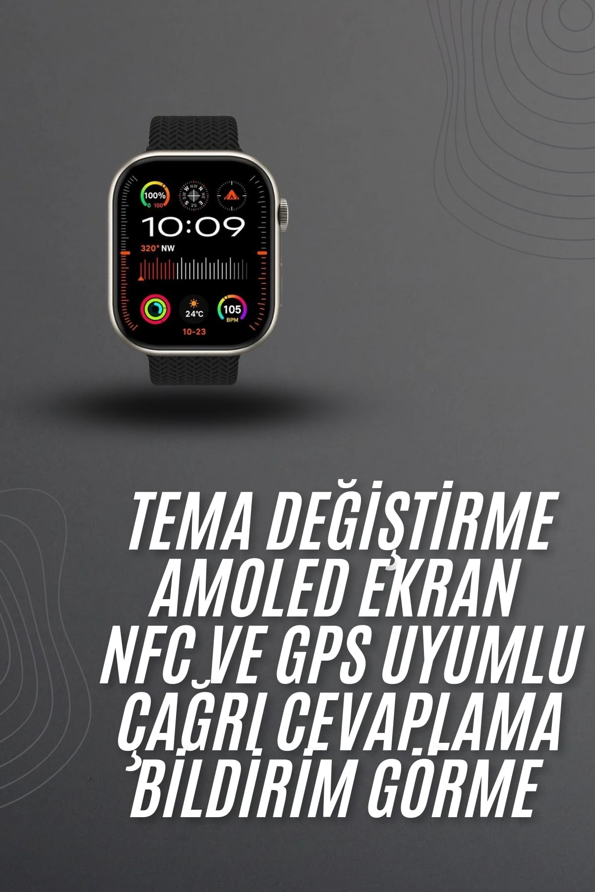 Geniş AMOLED Ekran ve Yenilikçi Kullanıcı Arayüzü2.02 inçlik tam dokunmatik AMOLED ekranı ile göz alıcı bir görüntü sunan bu akıllı model, 485x520 piksel çözünürlüğü sayesinde hem detayları net şekilde gösterir hem de güneş ışığında dahi yüksek görünürlük sağlar. Dönebilir dijital taç sayesinde ekran üzerinde yakınlaştırma-uzaklaştırma gibi işlevler kolayca gerçekleştirilirken, aynı zamanda menüler arası geçişi daha pratik hale getirir. Kendi zevkinize göre seçebileceğiniz 500'den fazla saat yüzü ile cihazınızı kişiselleştirebilir; akıllı tam görünüm stili, ızgara stili, daire stili ve liste stili gibi birden fazla menü stili ile saat deneyiminizi bambaşka bir seviyeye taşıyabilirsiniz.