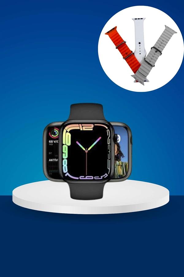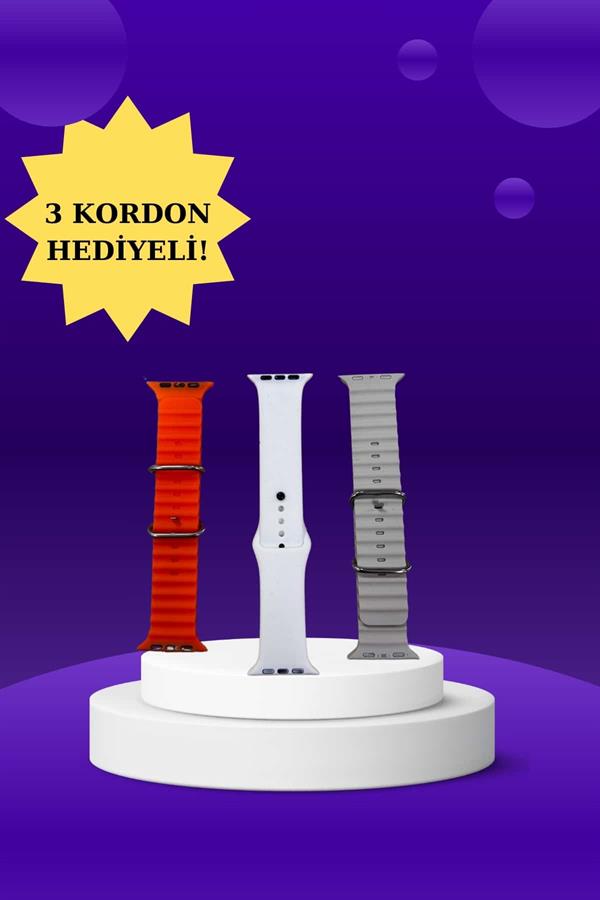 Akıllı Saat Arama Görüşme Bildirim Görme Uyku ve Sağlık Takibi Nabız Ölçer 3 Kordon Hediyeli