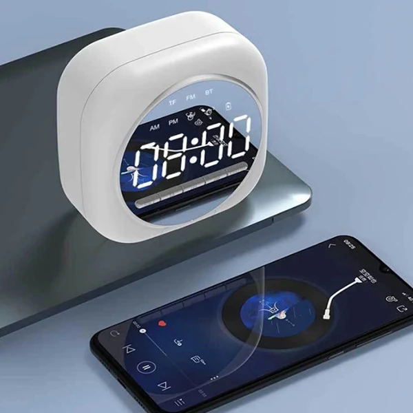 ALLY Q12 Bluetooth Hoparlör FM Radyo Dijital Masa Saati Alarm Uyandırma-(5775)