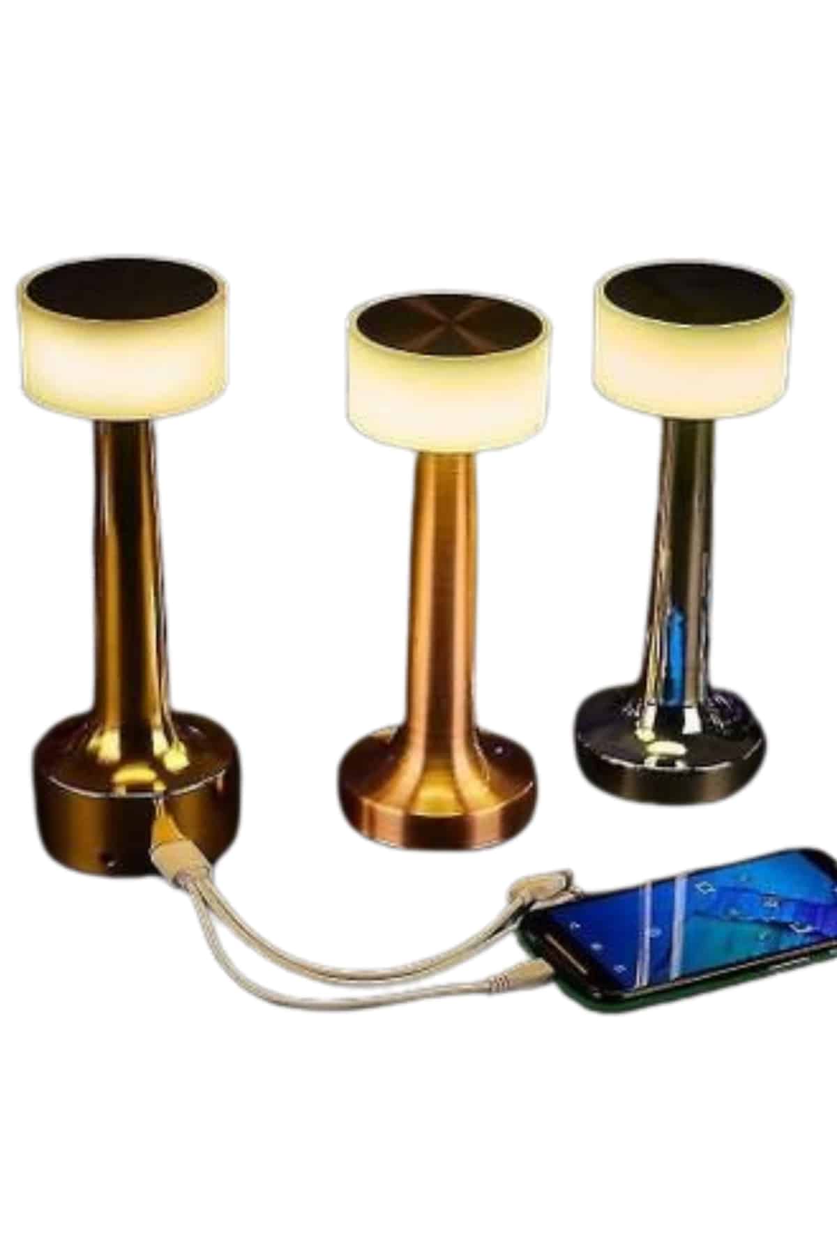 Altın Rengi Masa ve Gece Lambası Dokunmatik Şarjlı Masa Lambası