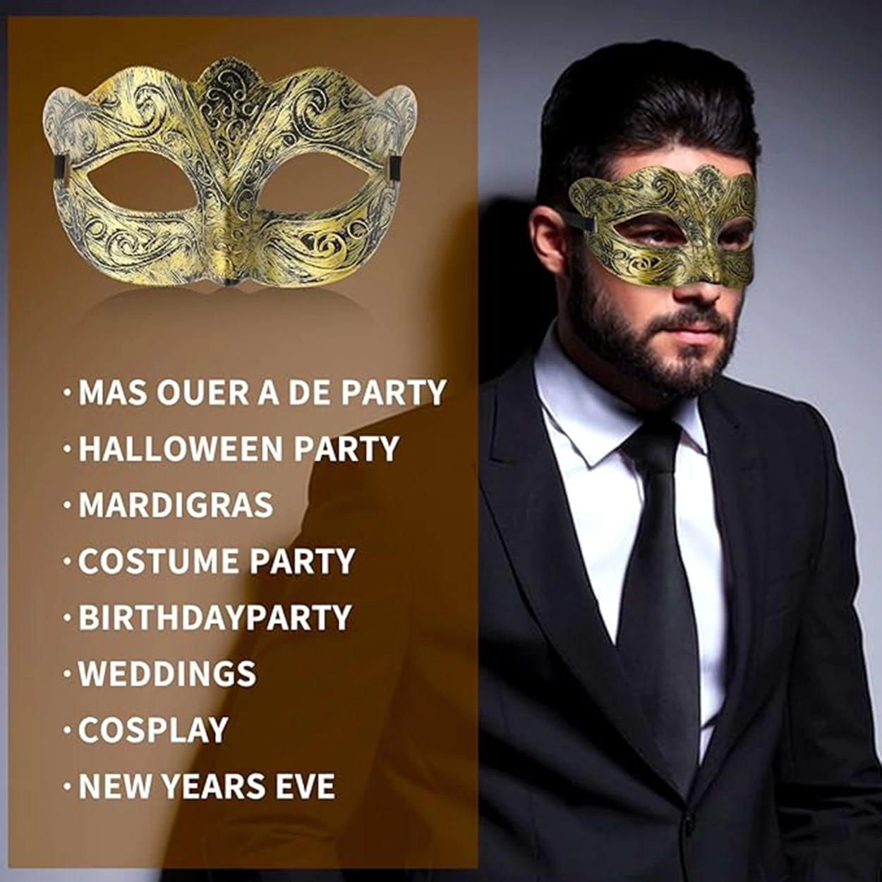 ???? Özel etkinliklerde fark yaratın ve gizemli bir hava katın Altın renkli eskitme detaylarıyla tasarlanan bu maske, hem şık hem de göz alıcı bir görünüm sunar.