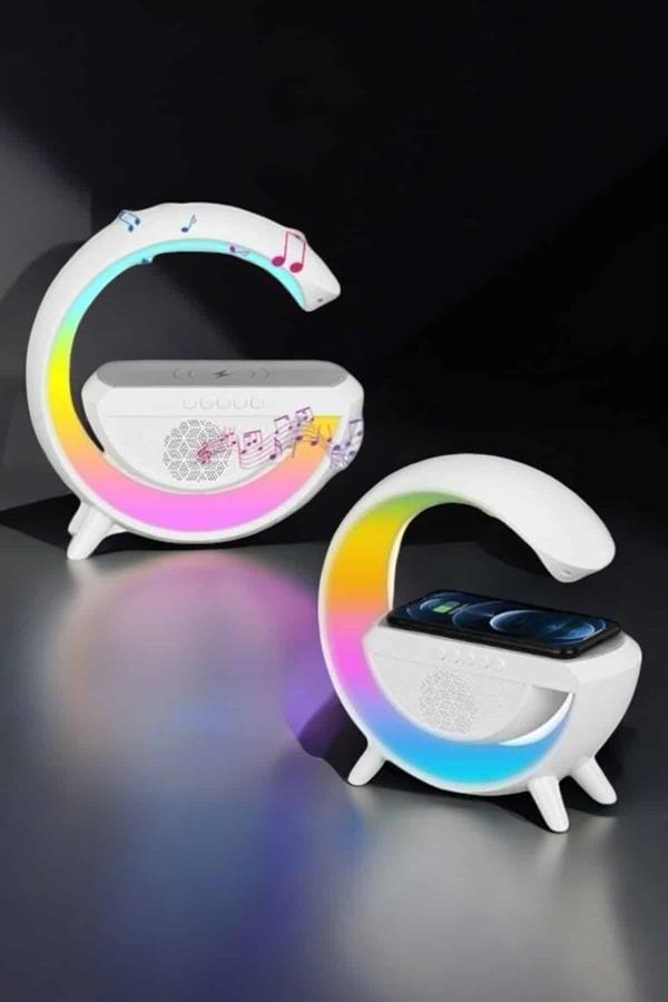 Kablosuz Şarj Özellikli Bluetooth Hoparlör Gece Lambası, şık tasarımı ve birden fazla işlevi bir arada sunarak modern yaşam tarzınıza mükemmel bir uyum sağlar. Bu cihaz, yüksek kaliteli LED gece lambası özelliği ile ortamınıza sıcak beyaz ışıktan renkli RGB aydınlatmalara kadar farklı ışık seçenekleri sunar. Ayarlanabilir parlaklık ayarları sayesinde hem bir çalışma lambası hem de dinlendirici bir gece lambası olarak kullanılabilir. Kompakt boyutları ve hafif yapısı ile kolay taşınabilir olan bu ürün, yalnızca evde değil, ofiste veya seyahatlerde de kullanılabilir. Evinize stil ve işlevsellik katmakla kalmaz, aynı zamanda başucu arkadaşı olarak günlük hayatınızı kolaylaştırır.