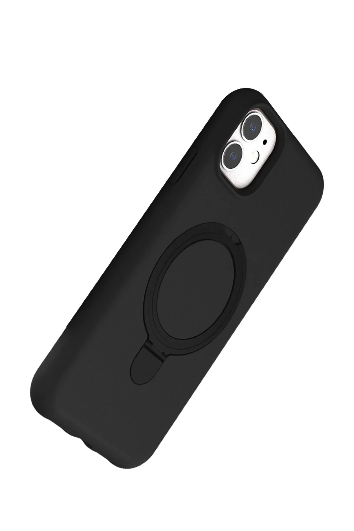 Apple iPhone 11 Regal Magsafe Standlı Kapak - Siyah-(5796)