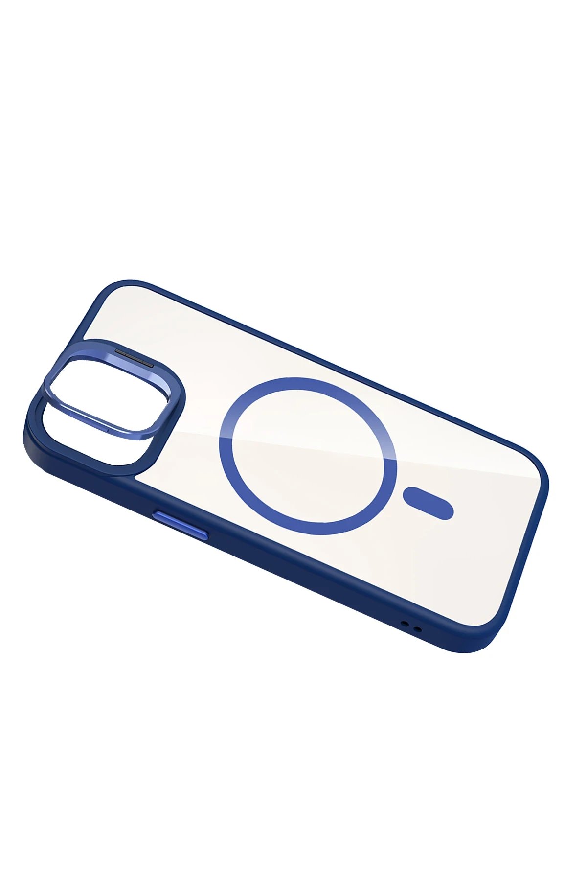 Apple iPhone 11 Remim Lensli Magsafe Standlı Kapak - Lacivert-(5796)