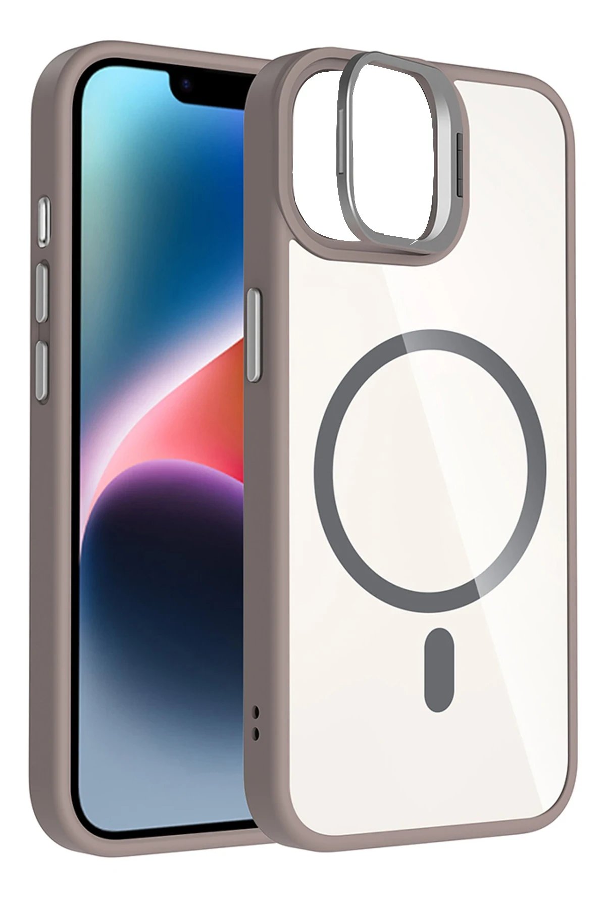 Apple iPhone 11 Remim Lensli Magsafe Standlı Kapak - Titan Gri-(5796)