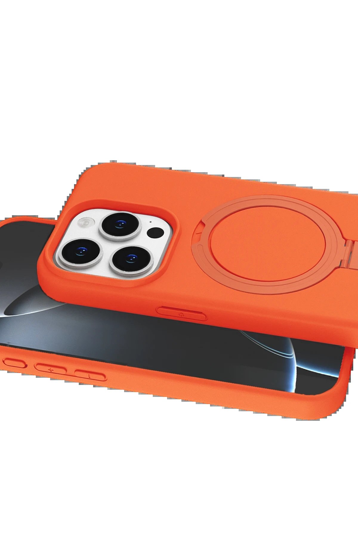 Apple iPhone 14 Pro Max Regal Magsafe Standlı Kapak - Turuncu-(5796)