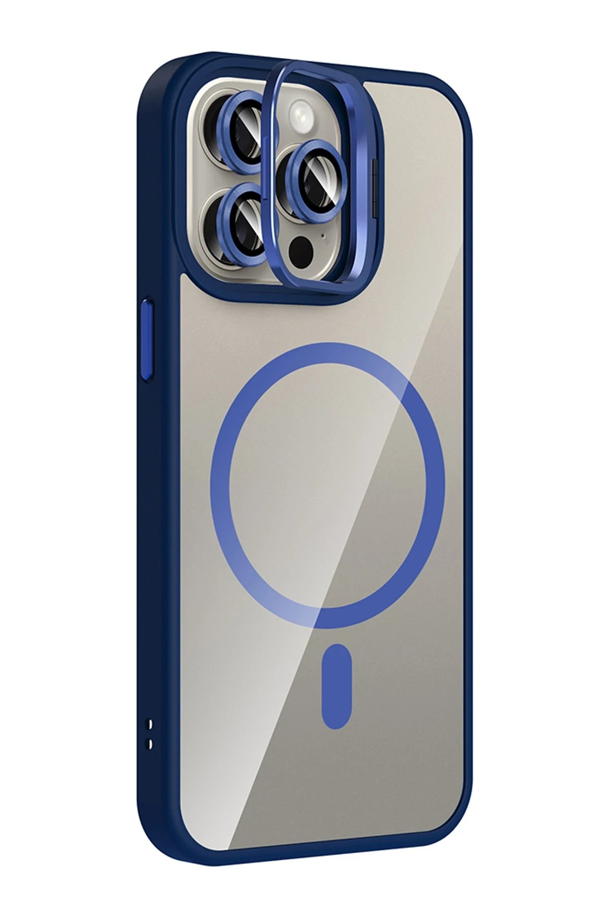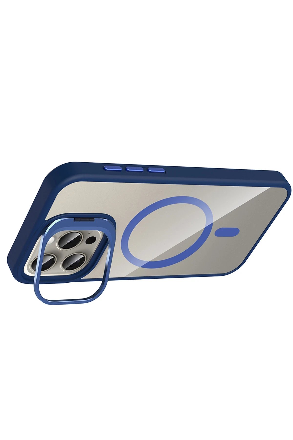 Apple iPhone 14 Pro Max Remim Lensli Magsafe Standlı Kapak - Lacivert-(5796)