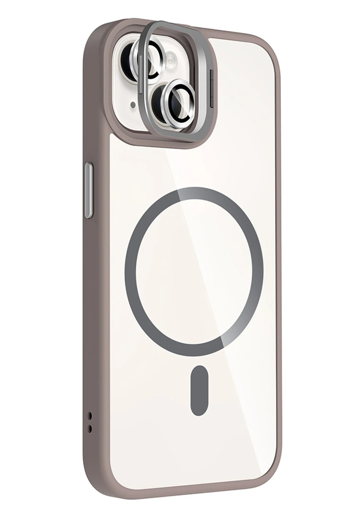 Apple iPhone 14 Remim Lensli Magsafe Standlı Kapak - Titan Gri-(5796)