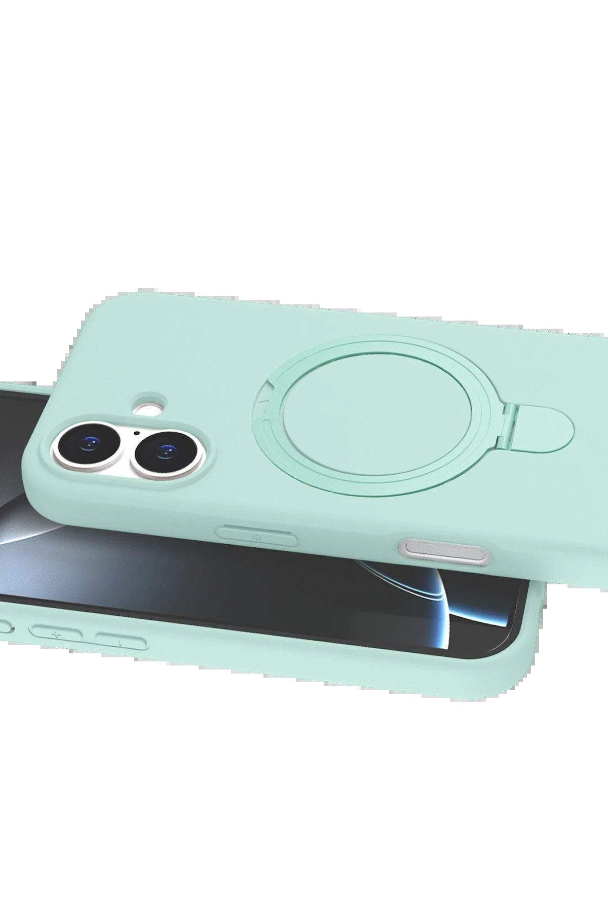Apple iPhone 16 Plus Regal Magsafe Standlı Kapak - Su Yeşili-(5796)