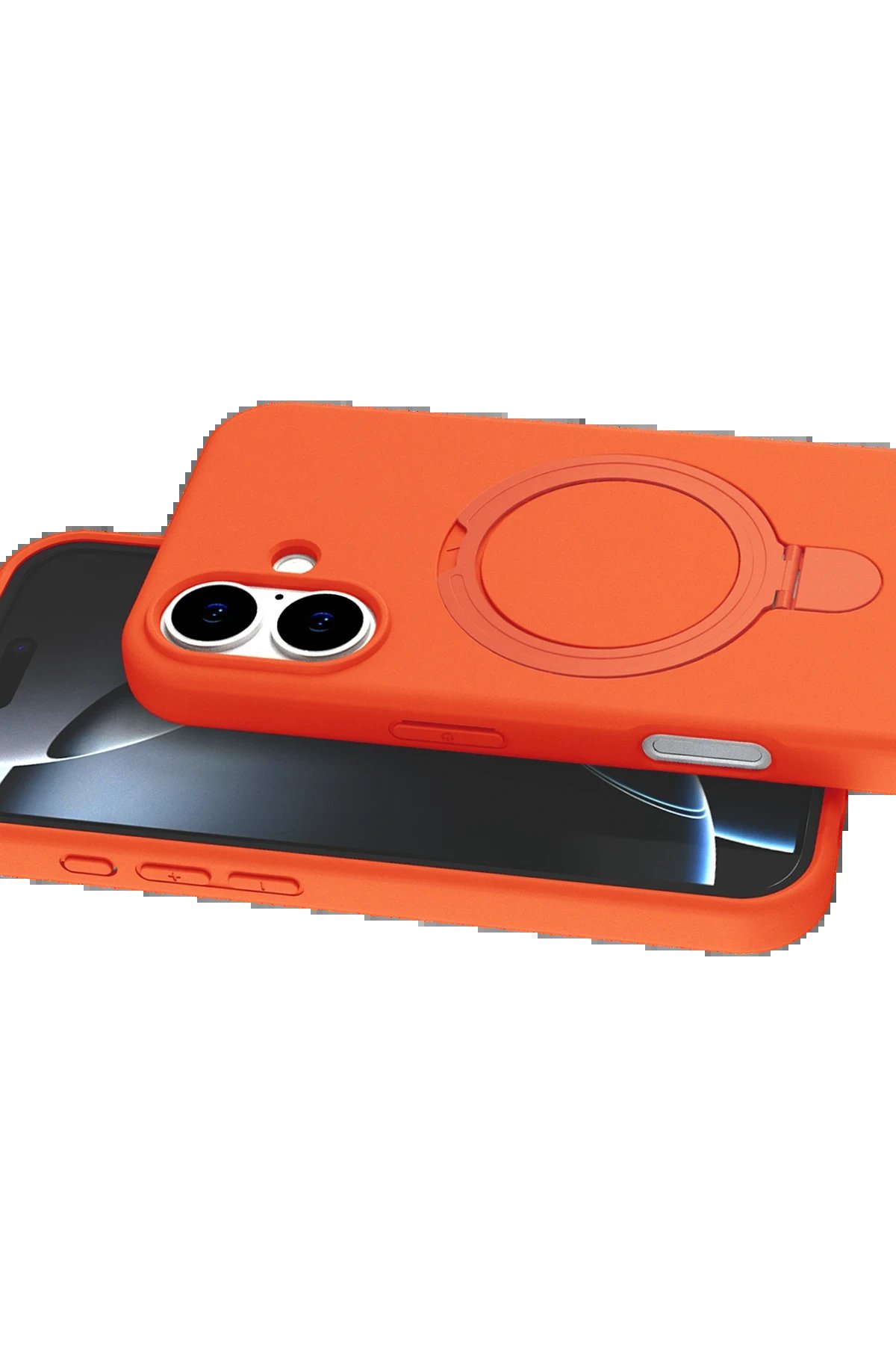Apple iPhone 16 Plus Regal Magsafe Standlı Kapak - Turuncu-(5796)