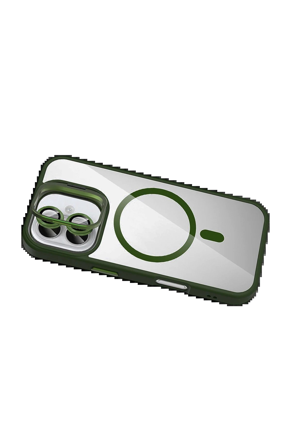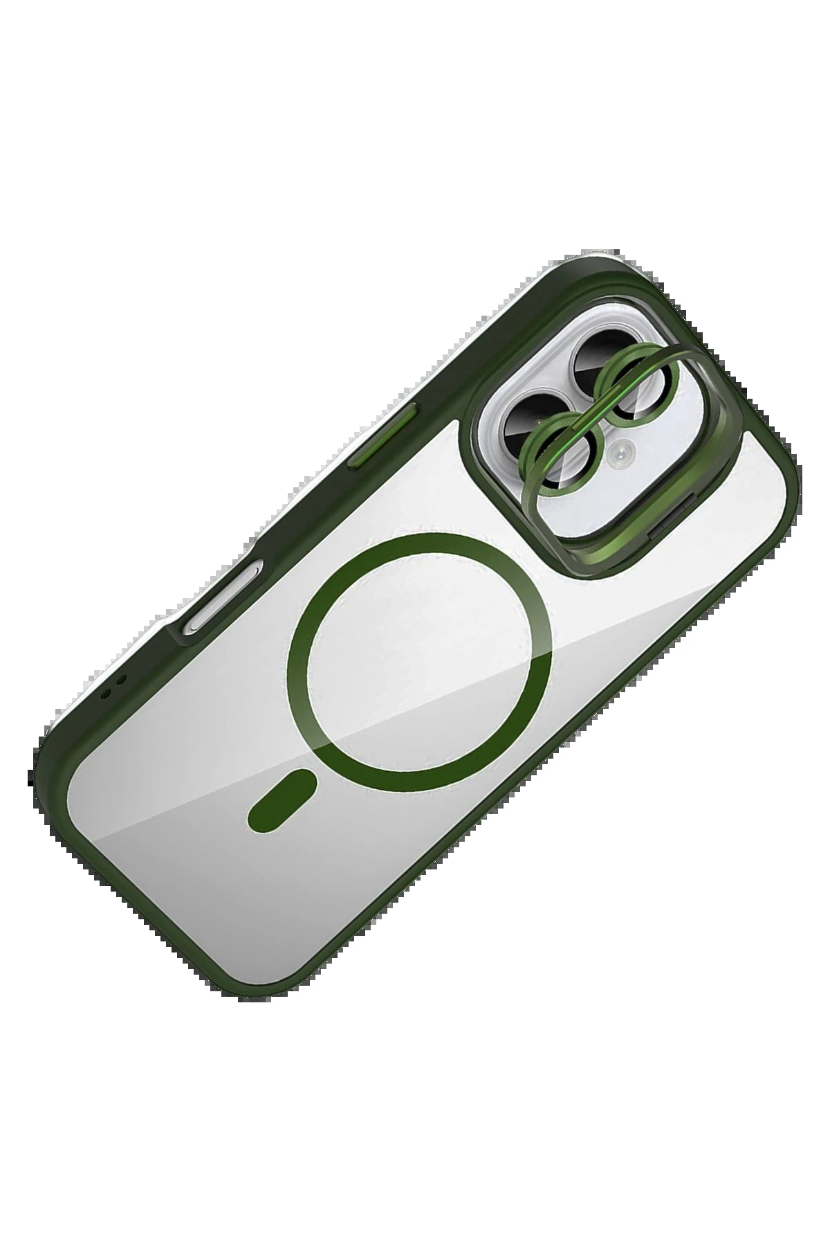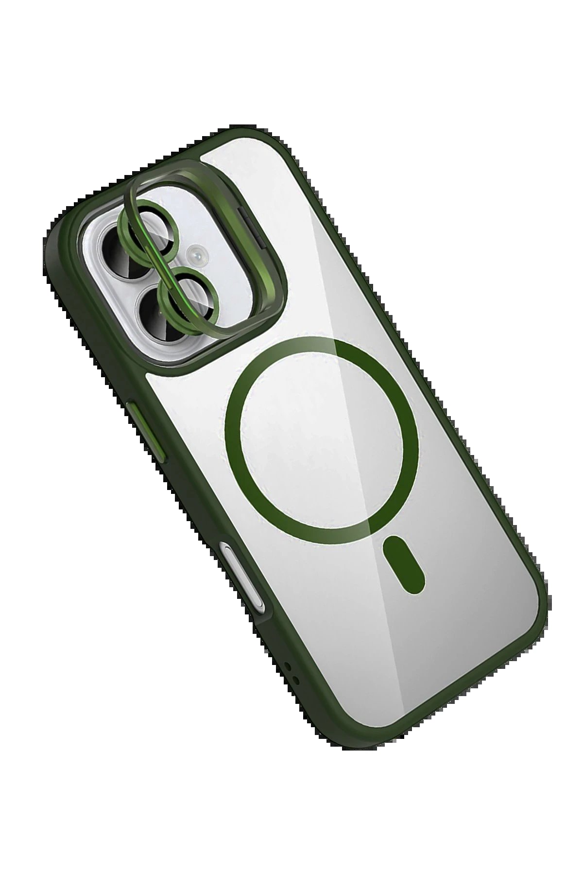 Apple iPhone 16 Plus Remim Lensli Magsafe Standlı Kapak - Koyu Yeşil-(5796)