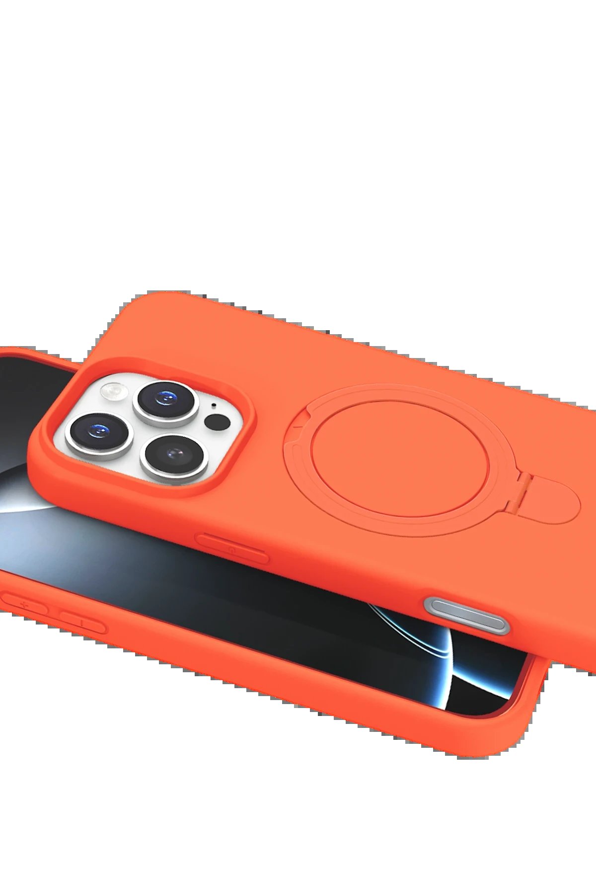 Apple iPhone 16 Pro Regal Magsafe Standlı Kapak - Turuncu-(5796)