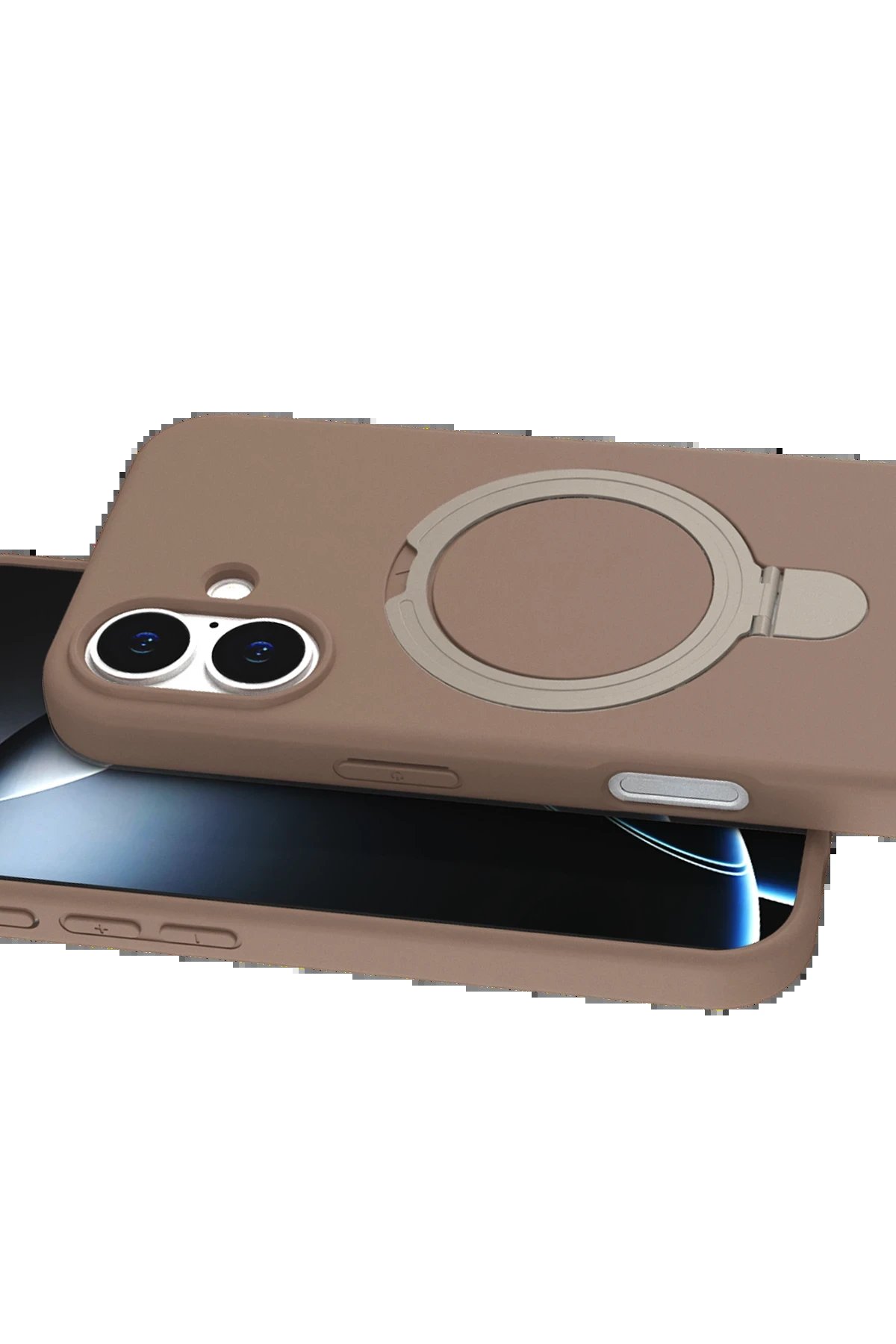 Apple iPhone 16 Regal Magsafe Standlı Kapak - Çöl Titanyum-(5796)