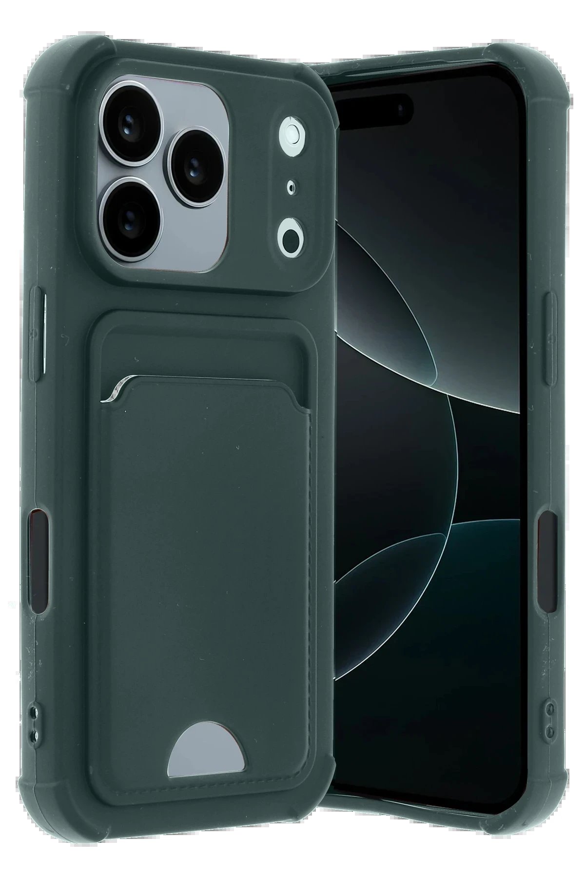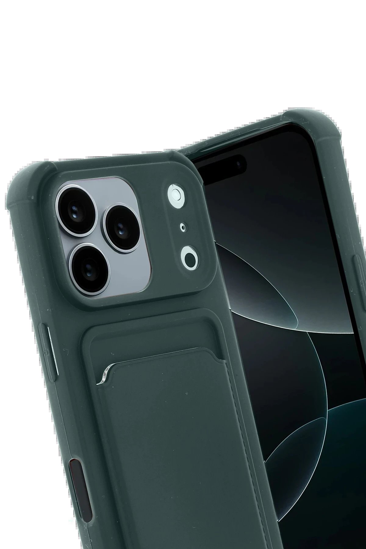 Apple iPhone 17 Pro Kelvin Kartvizitli Silikon - Koyu Yeşil-(5796)