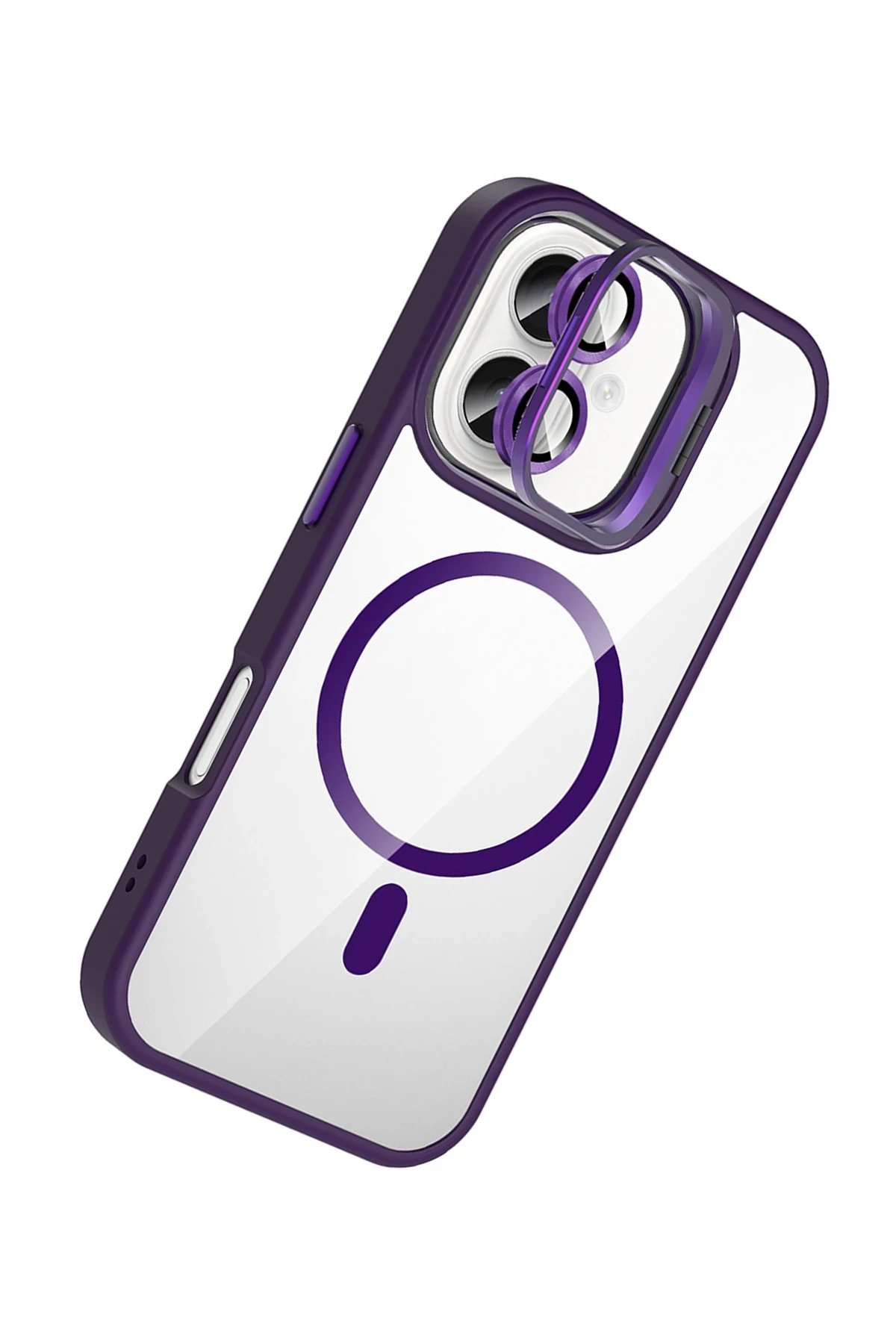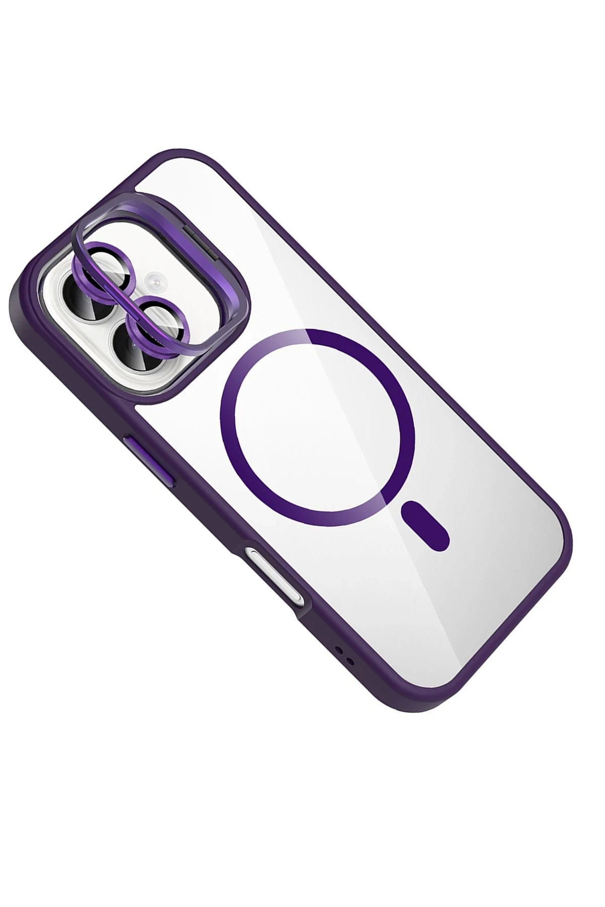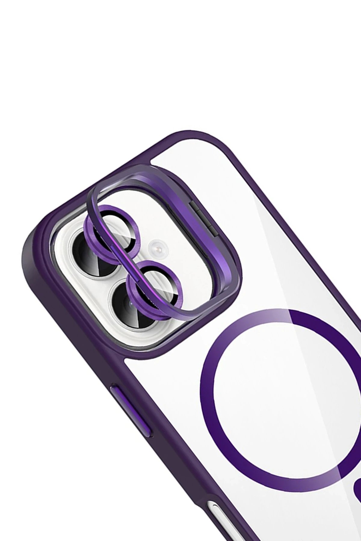 Apple iPhone 17 Remim Lensli Magsafe Standlı Kapak - Derin Mor-(5796)
