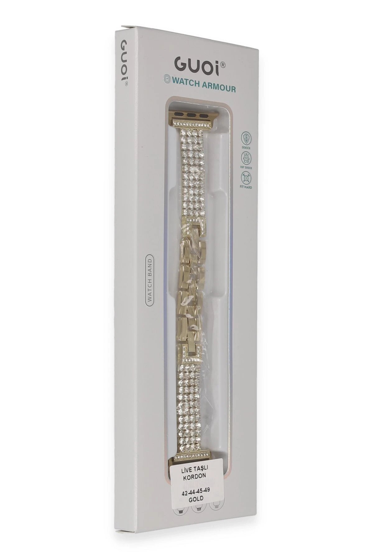 Apple Watch 38mm Live Taşlı Kordon - Gold-(5796)