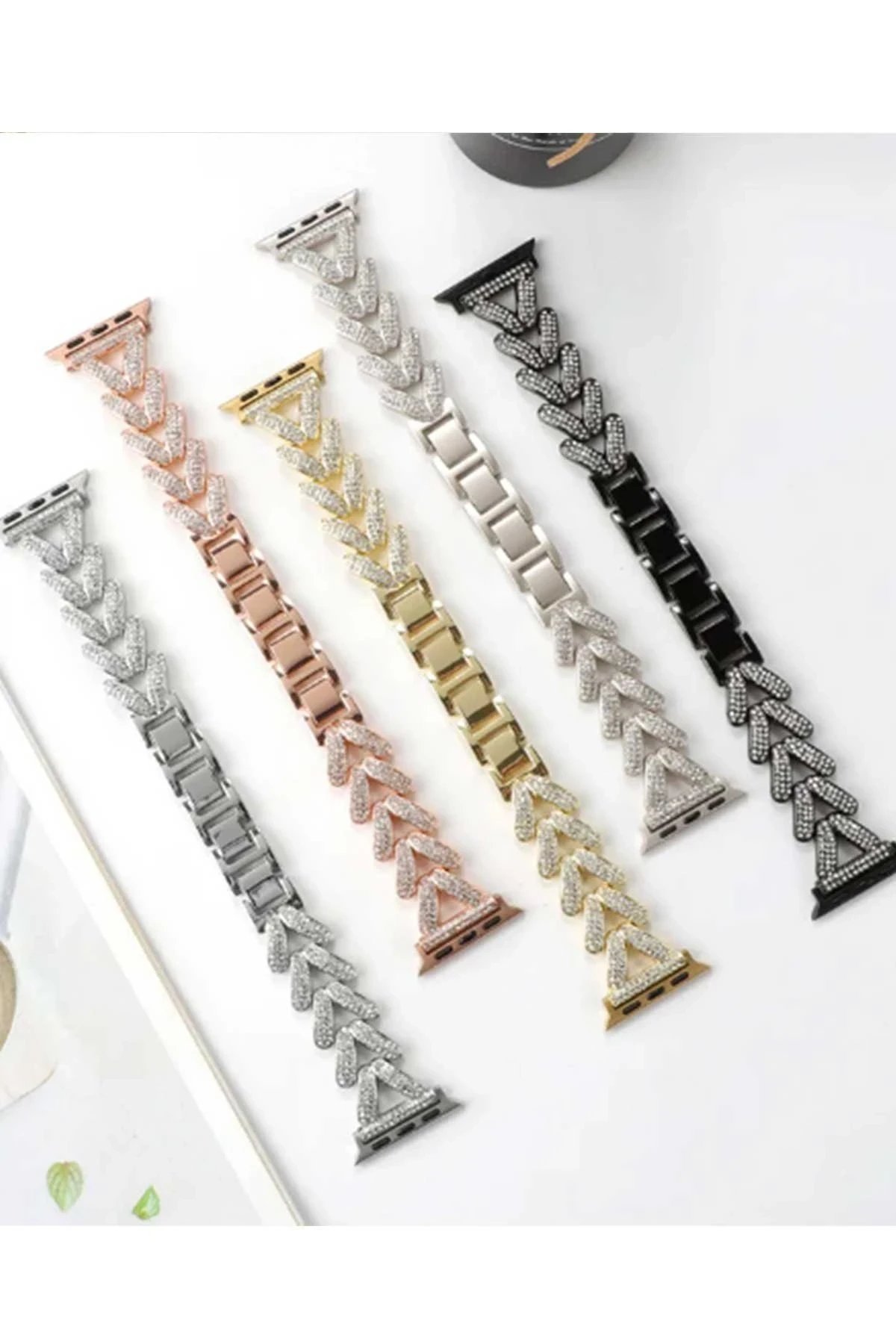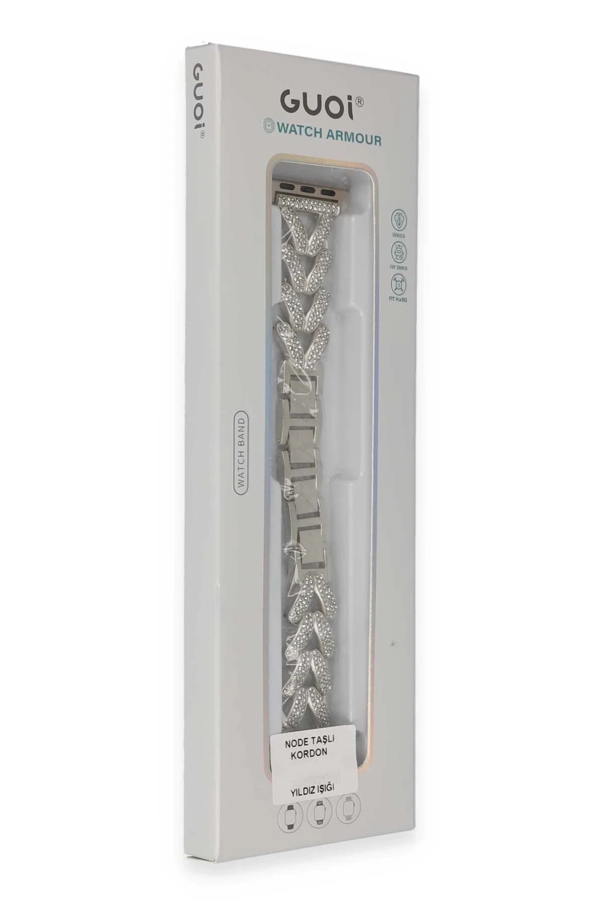 Apple Watch 42mm Node Taşlı Kordon - Titanyum-(5796)