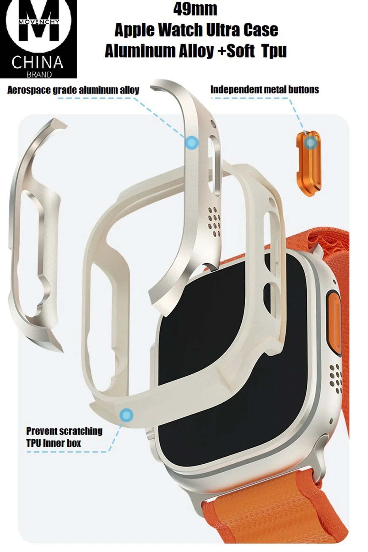 Apple Watch Ultra 49mm MO-WT3 Alüminyum Camlı Kasa Ekran Koruyucu - Gold-(5796)