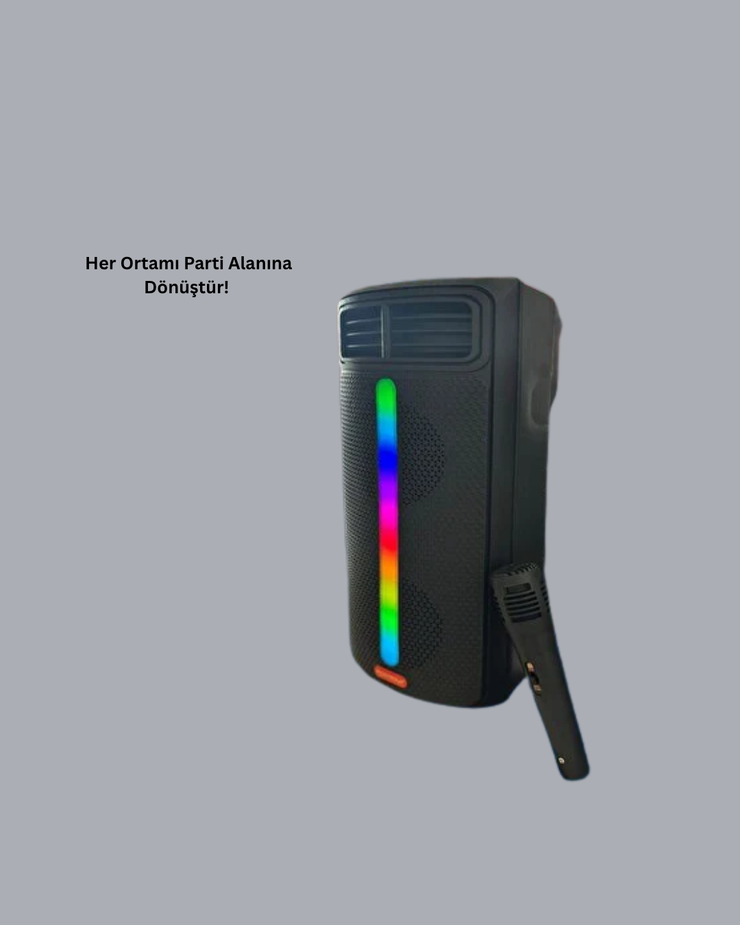 Bu Bluetooth Işıklı Hoparlör, güçlü ses performansı ve dikkat çekici ışık efektleriyle müzik keyfini yeni bir seviyeye taşıyor. 2x5W ses çıkışıyla temiz, net ve yüksek ses deneyimi sunar. Renk değiştiren RGB ışıkları, dinlediğiniz müzikle birlikte hareket ederek ortamınıza enerjik bir atmosfer kazandırır. Siyah renkli modern tasarımı sayesinde her ortama uyum sağlar. Şarj edilebilir piliyle 2 saate kadar kesintisiz müzik dinleyebilir, ister evde ister dışarıda kablosuz müzik keyfinin tadını çıkarabilirsiniz.