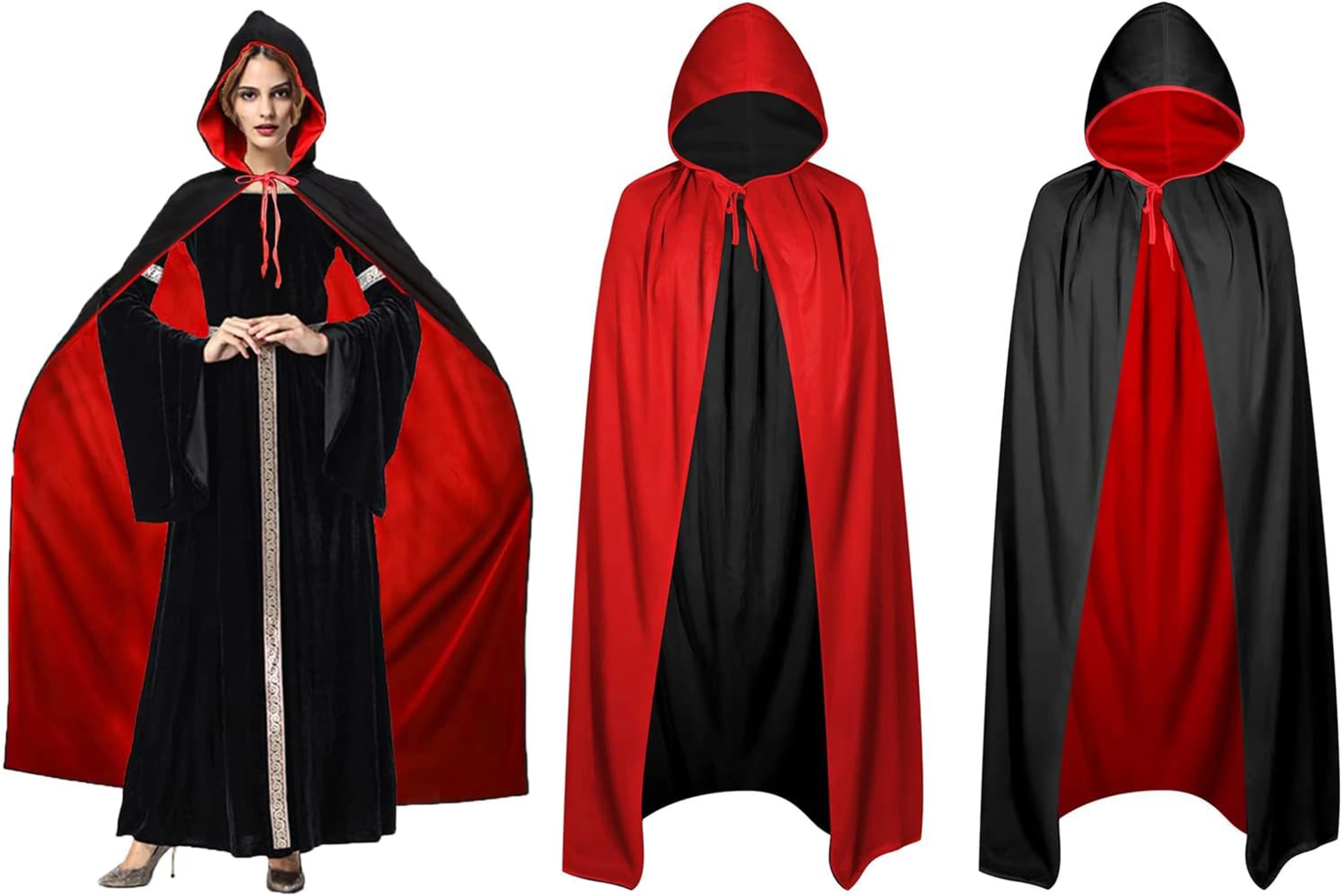 Çift Taraflı Kullanılabilir Siyah Kırmızı Kapişonlu Pelerin 110 cm Yetişkin, kostüm partileri, cosplay veya diğer özel günlerde eğlenceli ve gizemli bir görünüm elde etmek isteyenler için mükemmel bir seçimdir. Siyah ve kırmızı olmak üzere iki farklı rengi ile kullanılabilen bu pelerin, size birçok farklı kostüm seçeneği sunar. Kapüşonu ve uzun boyu ile de gizemli bir hava katacaktır.