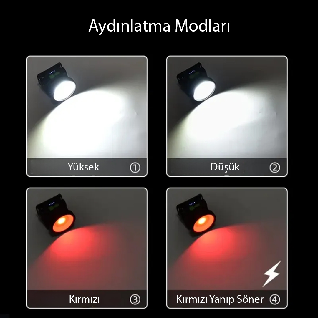 WH-8868B Cob Led Beyaz Kırmızı Solar Kafa Lambası Feneri TYPE-C Şarjlı Özellikleri