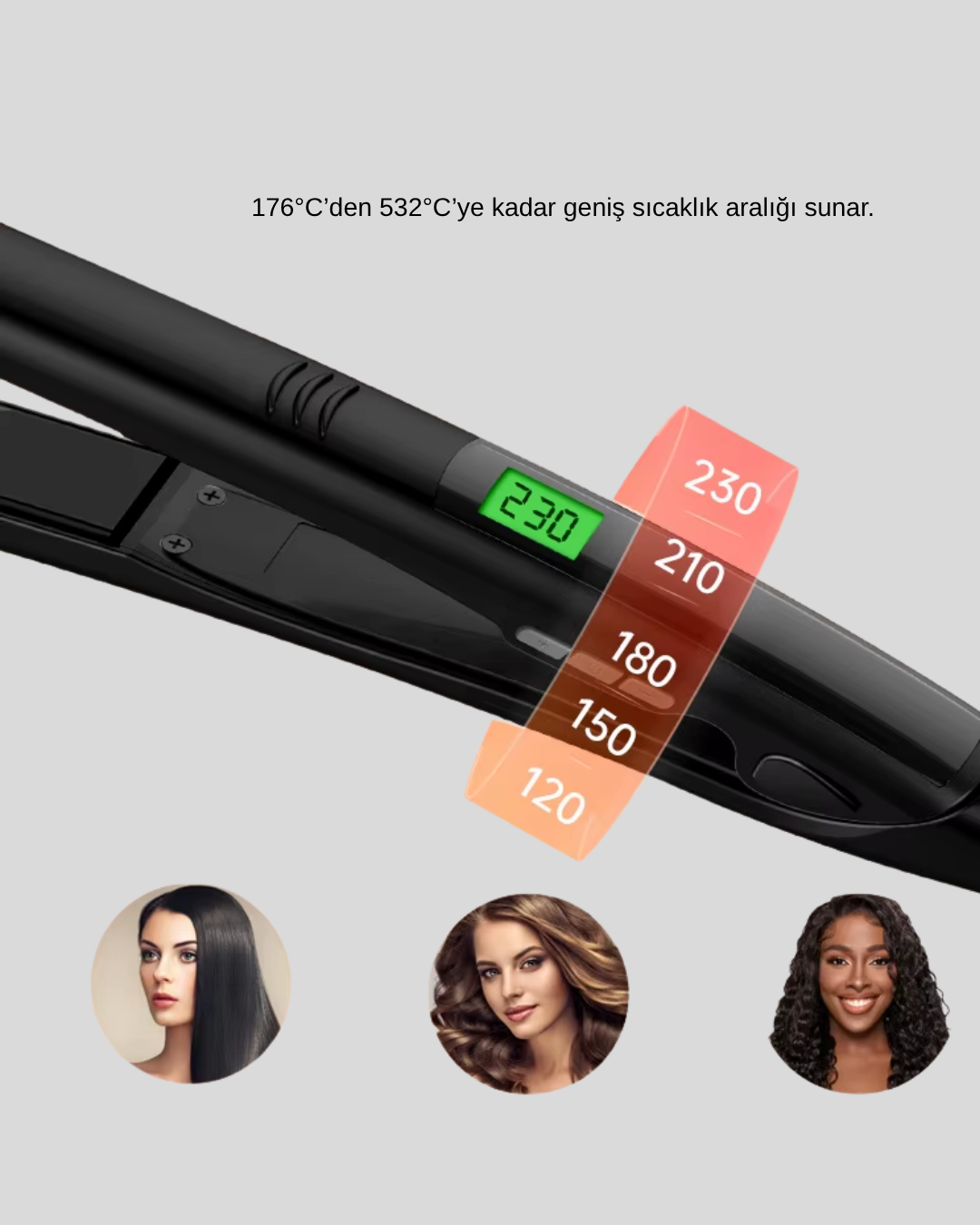 Dijital Ekranlı Isı Ayarlı Saç Düzleştirici – Titanyum Plaka, Seyahat Dostu Tasarım