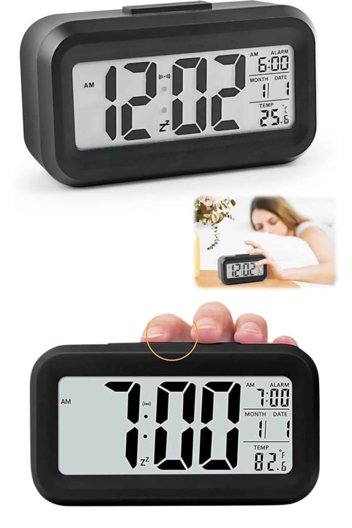 Pratik kullanımı ve şık tasarımıyla öne çıkan bu dijital masa saati, her anı planlamanıza yardımcı olmak için ideal bir çözümdür. Büyük LCD ekranı sayesinde saati, tarihi ve sıcaklık bilgilerini rahatlıkla takip edebilirsiniz. Kararmış ortamlarda dahi ekranın otomatik olarak aydınlanması, saatin her koşulda net bir şekilde görünmesini sağlar. 6 saniye sonra kendiliğinden sönen ışık özelliği, gözlerinizi rahatsız etmeden enerji tasarrufu sağlar.Alarm fonksiyonu sayesinde sabahları rahatça uyanabilir, güne dinç başlayabilirsiniz. Ayrıca, tarih ve ortam sıcaklığı bilgilerini aynı anda görüntüleyebilmeniz, günlük planlamanızı kolaylaştırır. Kompakt ve şık tasarımı, ofis veya ev ortamında rahatlıkla kullanılmasını sağlar.Ürün ölçüleri 4,3 x 15,1 x 7,7 cm olup, 3 adet AA pil ile çalışır (piller dahil değildir). Paket içeriğinde bir adet dijital masa saati bulunmaktadır. Hem estetik hem de fonksiyonel özellikleri ile hayatınıza pratiklik katacak bu saat, günlük kullanım için mükemmel bir tercihtir.