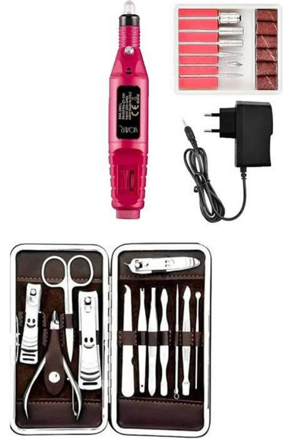 Elektrikli Manikür Pedikür Seti İkili Set 12 Parça Tırnak Bakımı Törpü Protez Çıkarma