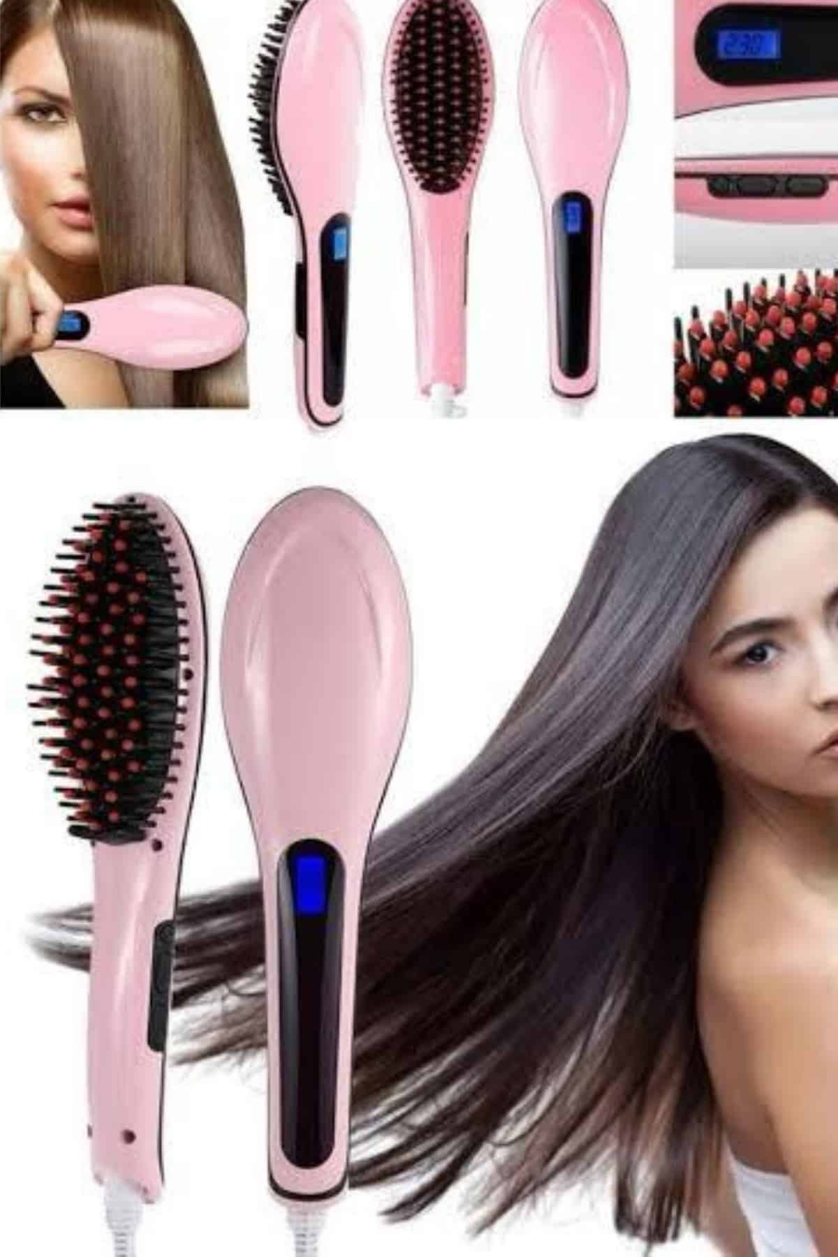Elektrikli Saç Düzleştirici Tarak Saç Düzleştirici Fırça Sıkı Dişli Pembe