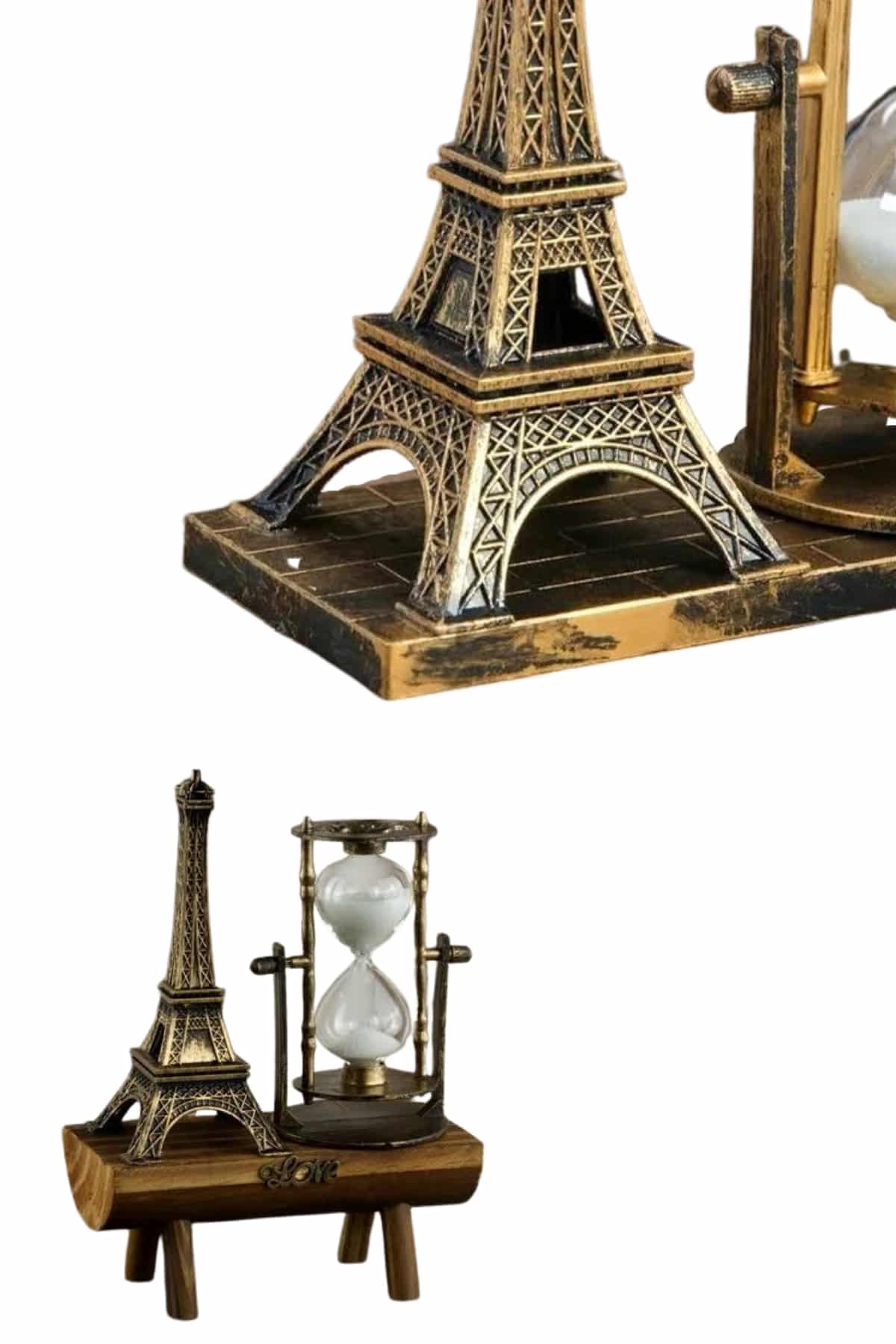 Eyfel Kulesi Tasarımlı Kum Saati Kristalleştirilmiş Kum Saati Dekoratif Ahşap Görünümlü