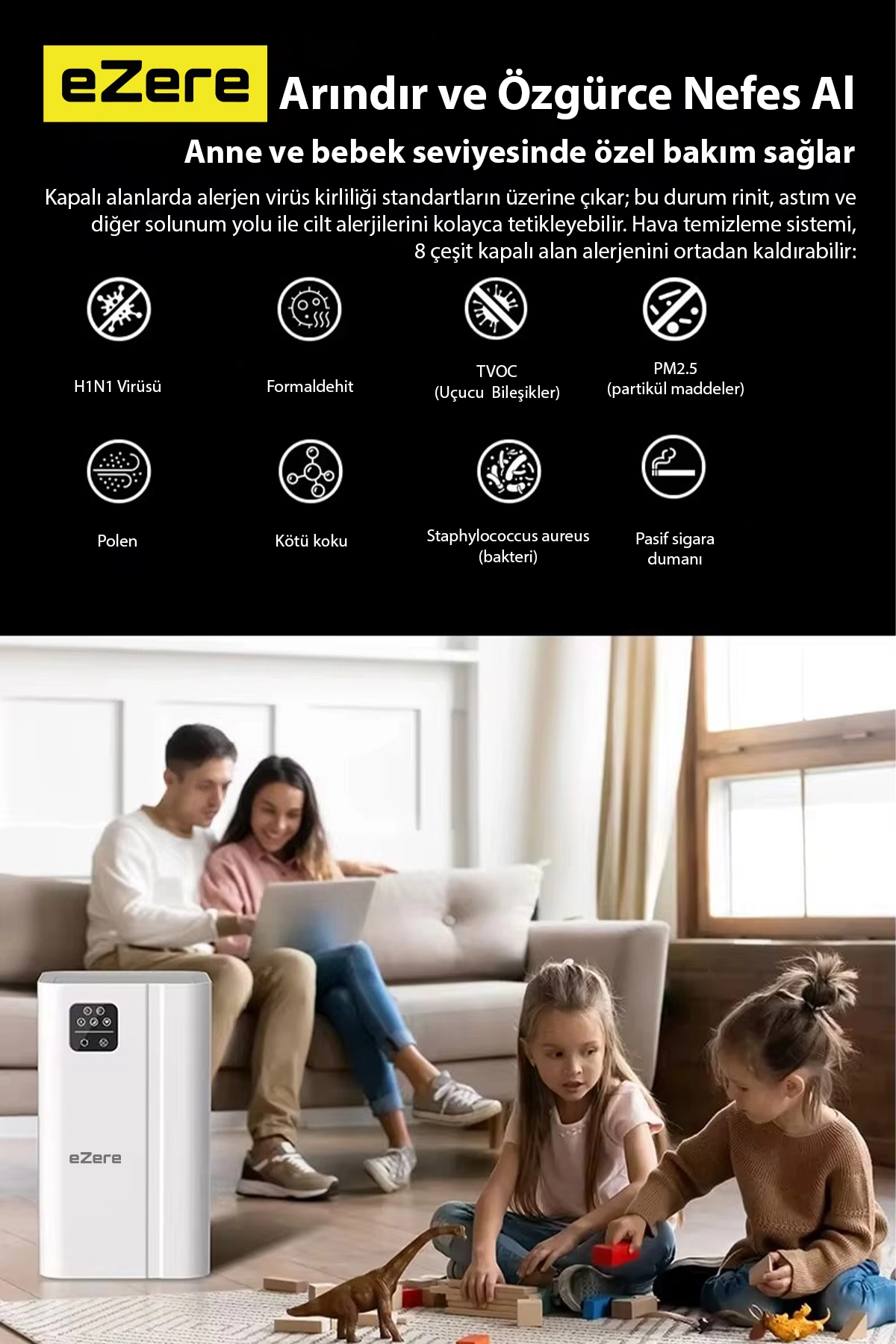 • Anne & Bebek Dostu: Alerjenleri (polen, PM2.5, H1N1 virüsü, Staphylococcus aureus vb.) temizleyerek çocuklar için güvenli bir ortam oluşturur.