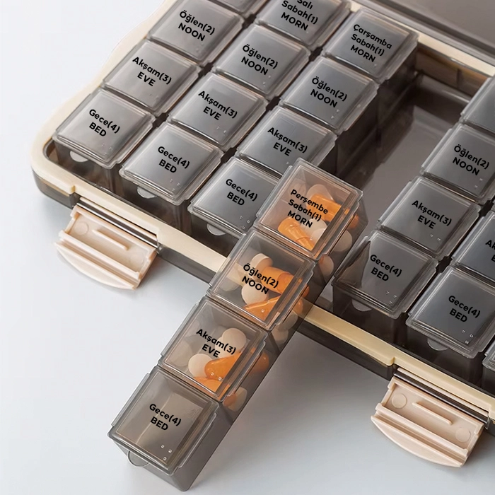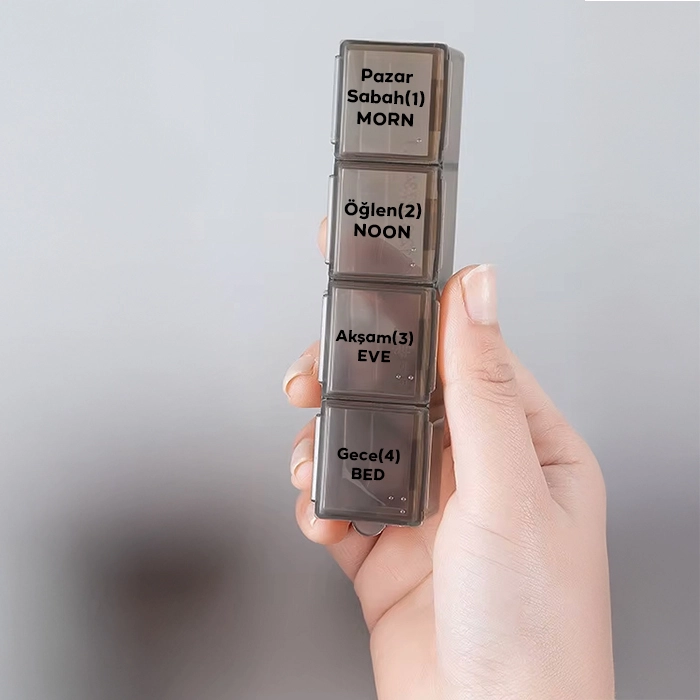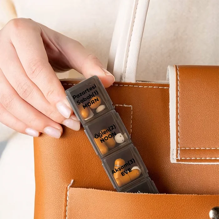 Zahmetsiz Kullanım: Sağlam bir şekilde yerine kilitlenen bu hap düzenleyicinin, kullanımı rahat ve pratik hale getirmek için bir bölme tasarımıyla açılması ve kapatılması kolaydır.
