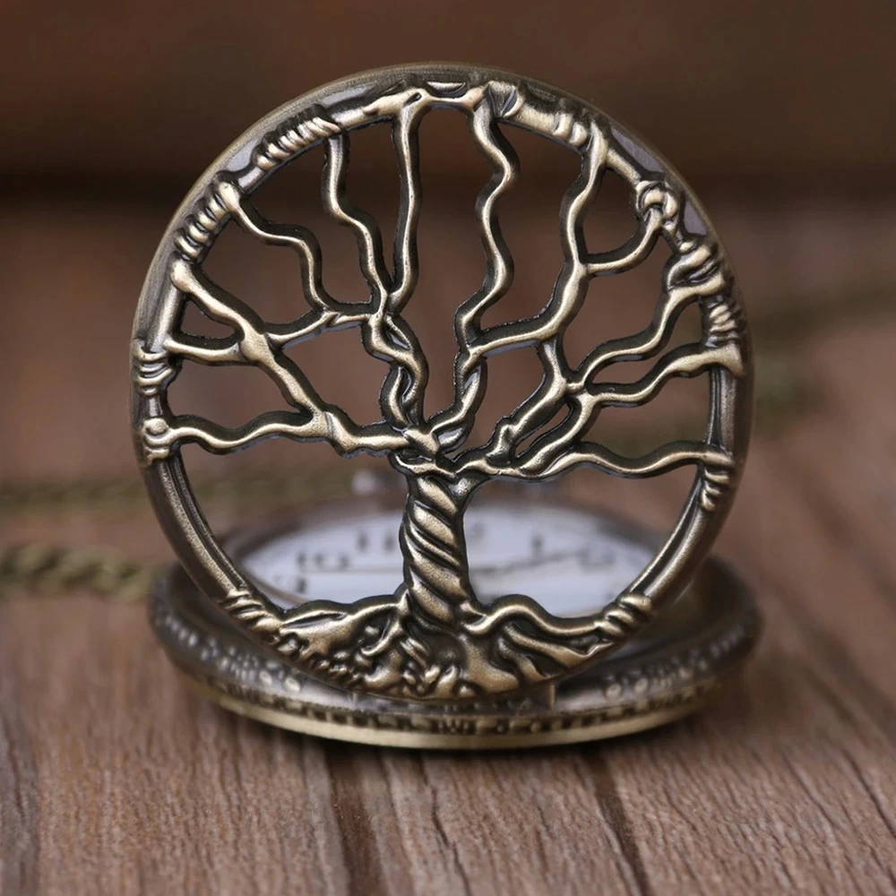 Köstekli saat kapağında bulunan hayat ağaçı oldukça şık bir görünüme getirmiştir.