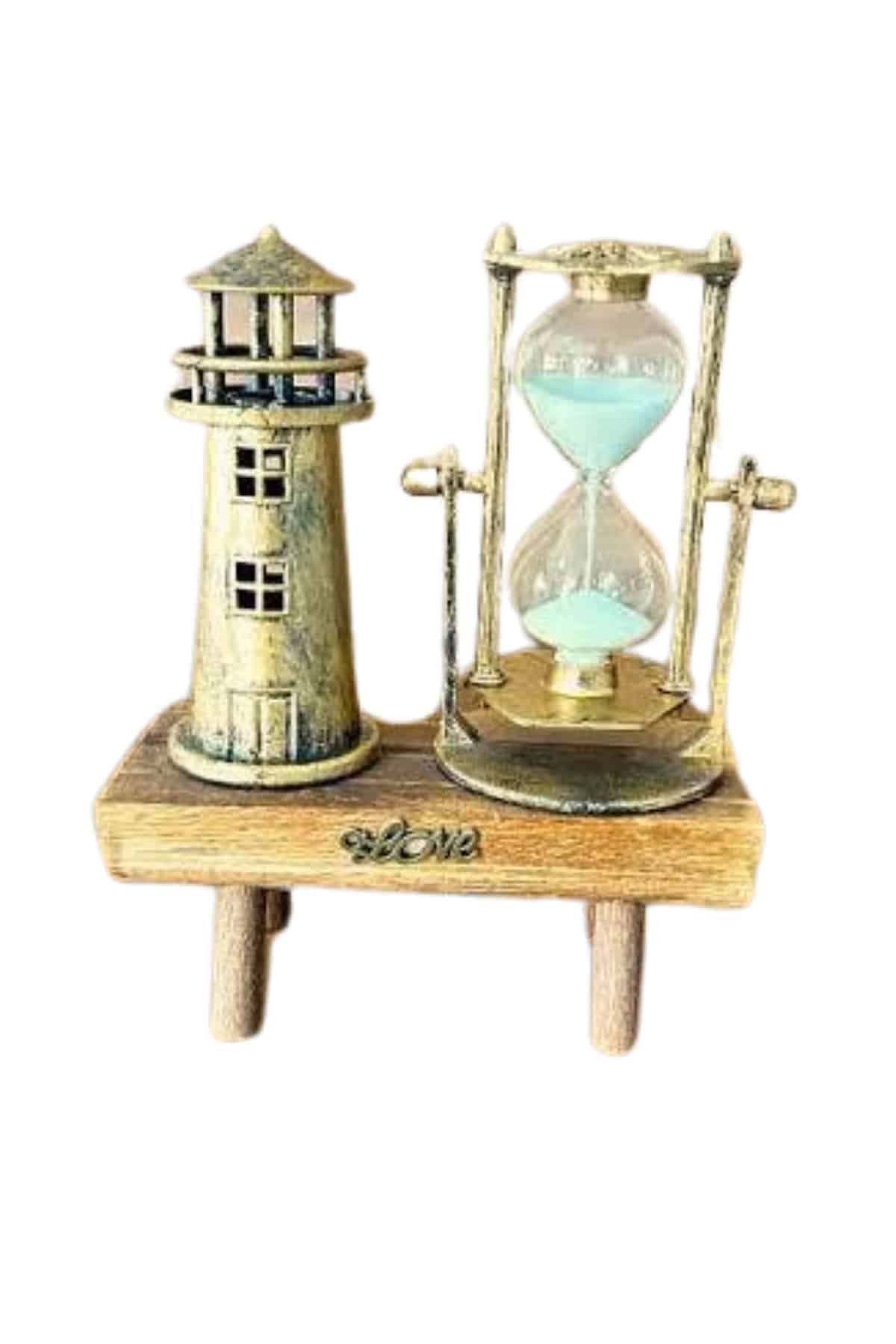 Hediyelik Eşya Retro Deniz Fenerli Kum Saati Ahşap Görünümlü Dekoratif Eşya