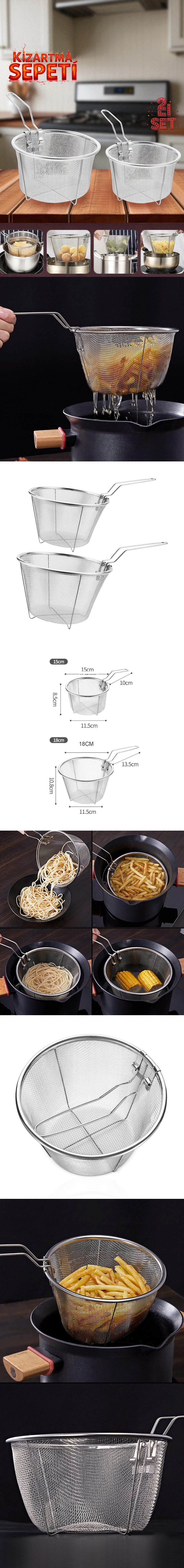 - Kızartma Sepeti Seti – Paslanmaz Tel Örgü