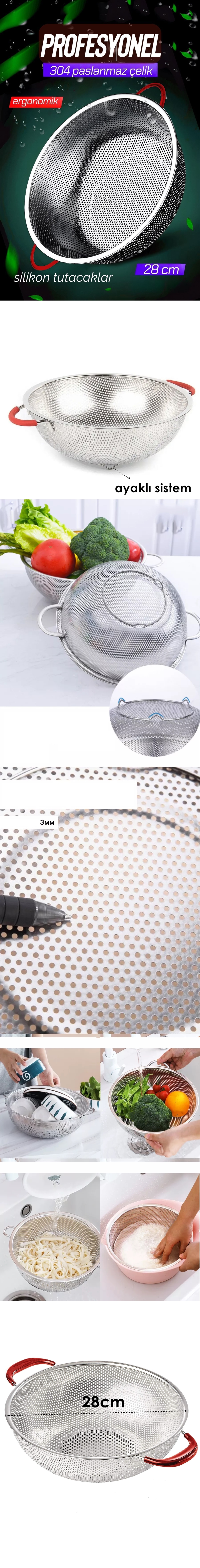 - Geniş ve Kullanışlı Tasarım: Geniş alanı sayesinde sebze, meyve ve makarna gibi yiyecekleri rahatlıkla süzebilirsiniz.